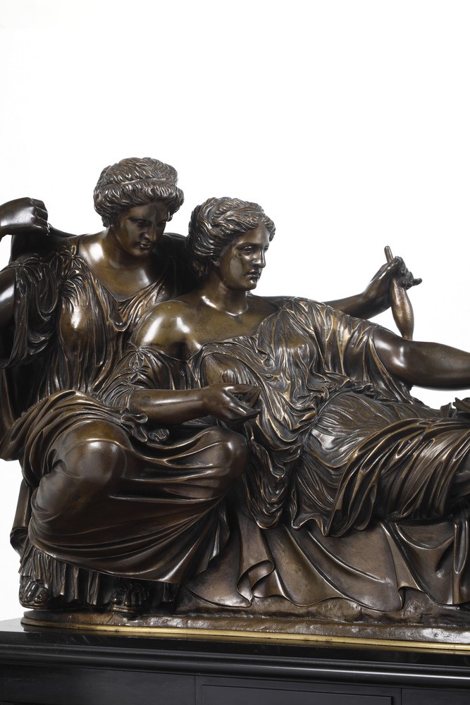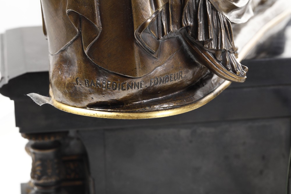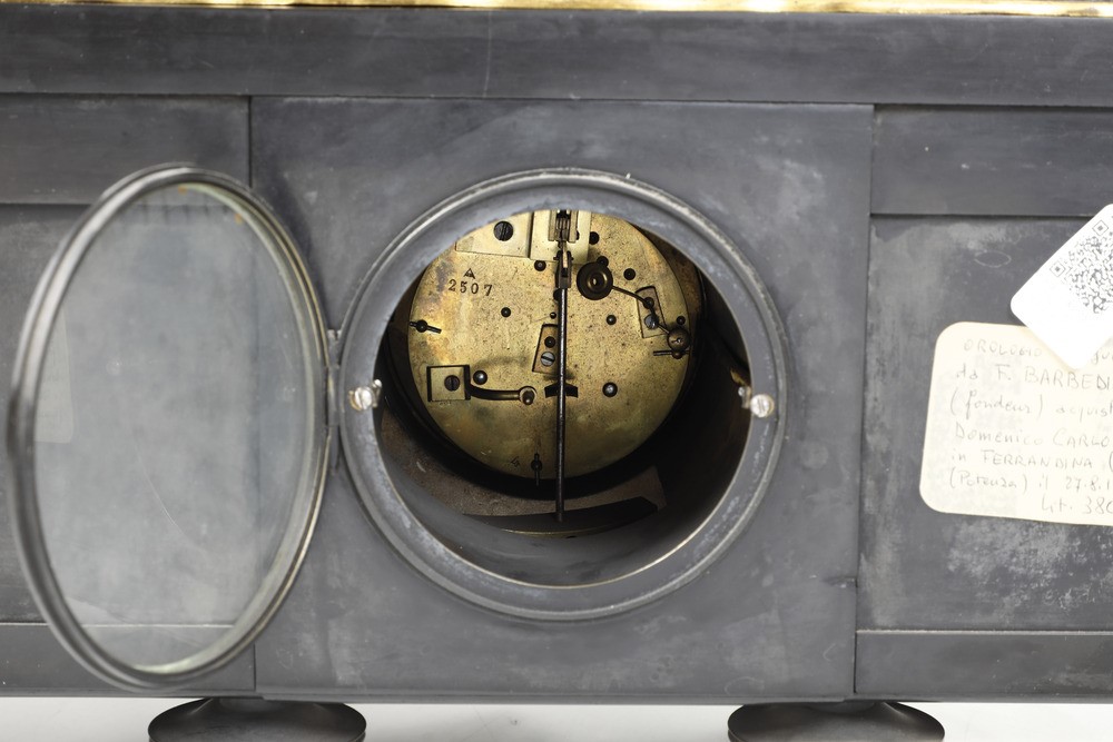 Orologio da appoggio in bronzo e legno ebanizzato. XIX secolo