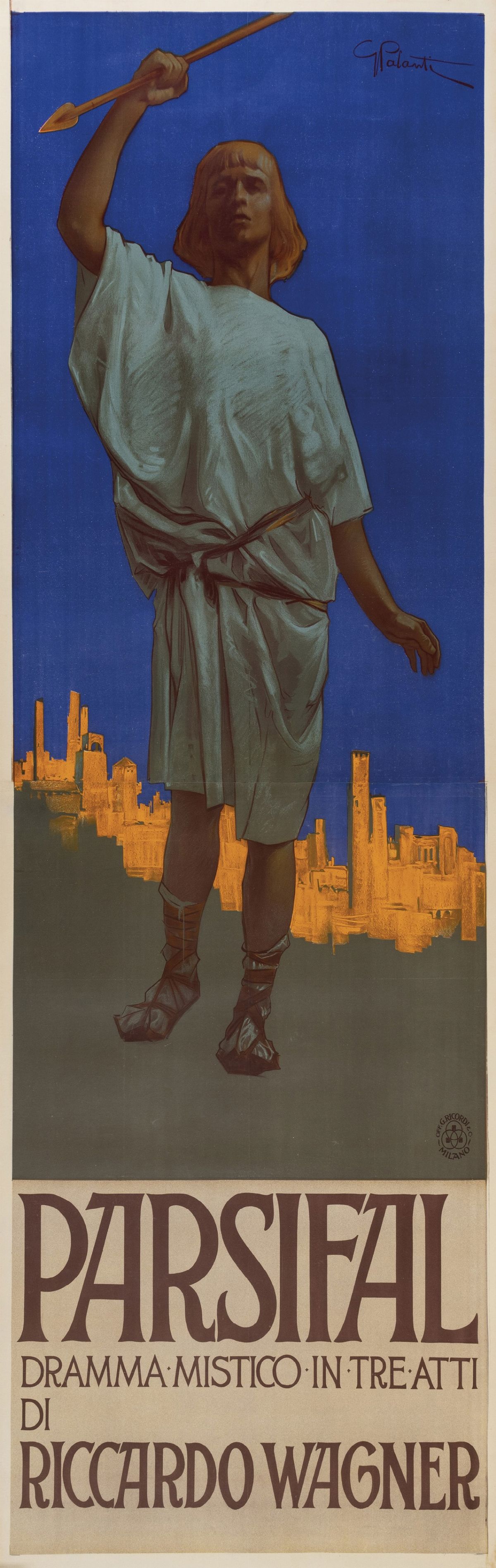 Affisso litografico, 1914 . Impresso da Officine Ricordi & C Milano. Cm 105 x 290. Telato. Qualità A