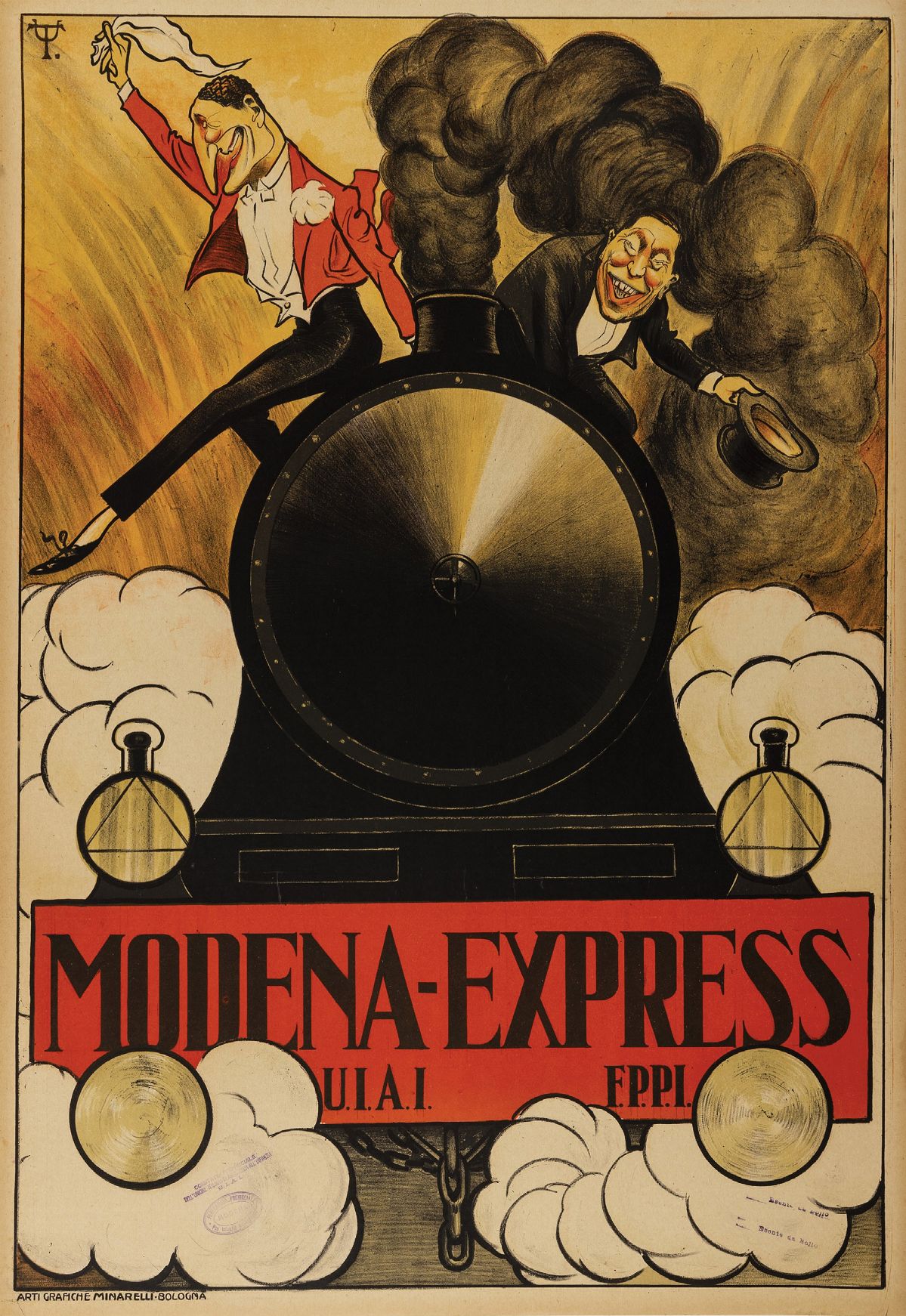 Affisso litografico, 1905 ca. Impresso da Graf. Minarelli, Bologna. Cm 70 x 100. Telato. Qualità A