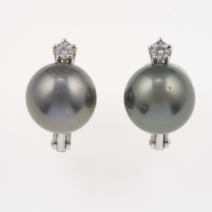 Orecchini con perle coltivate grigie e piccoli diamanti