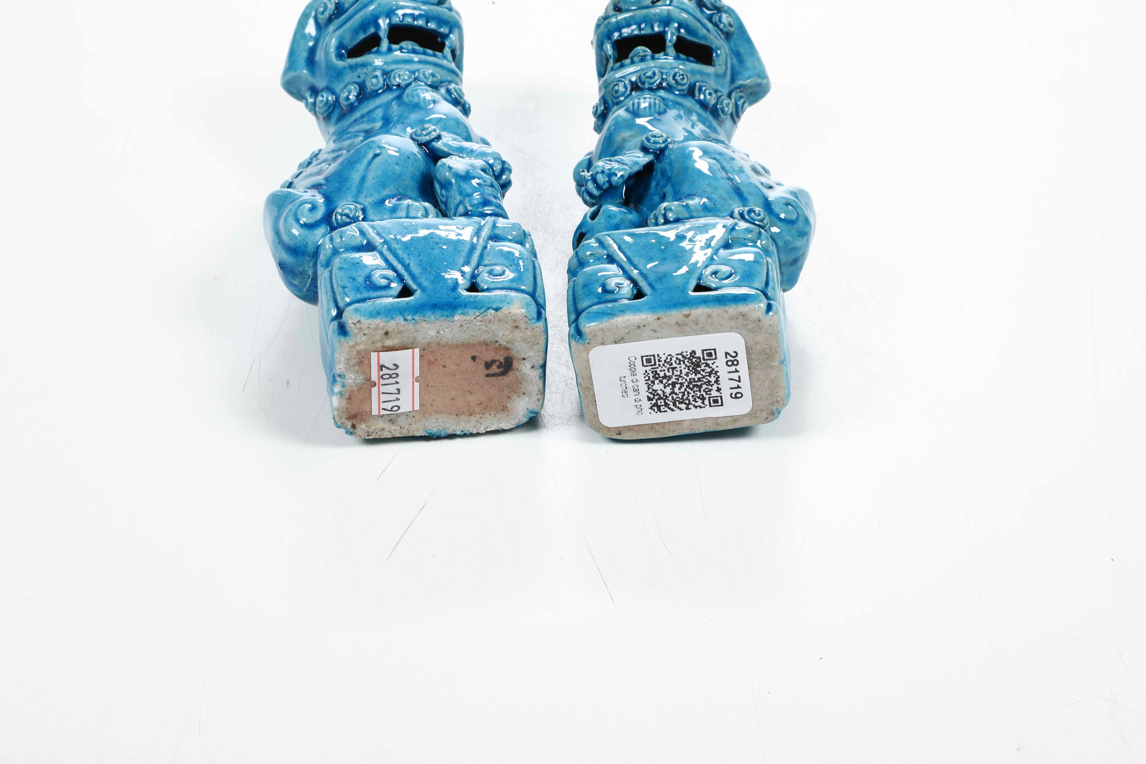 Coppia di cani di Pho in porcellana con monocromia turchese, Cina, Dinastia Qing, XIX secolo