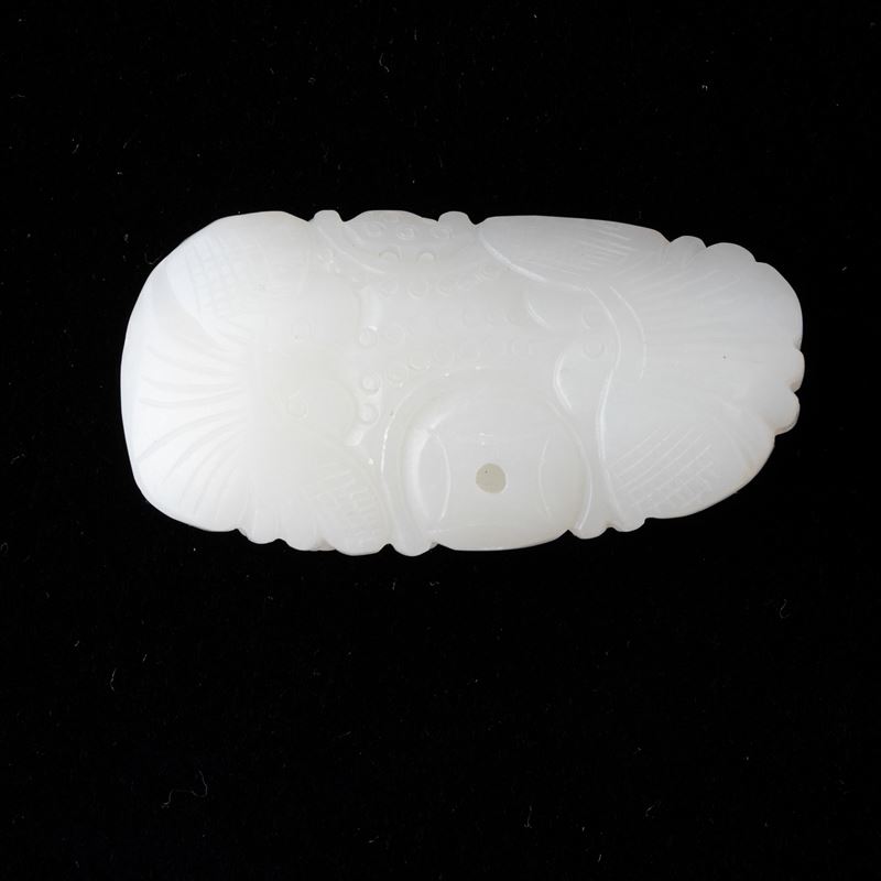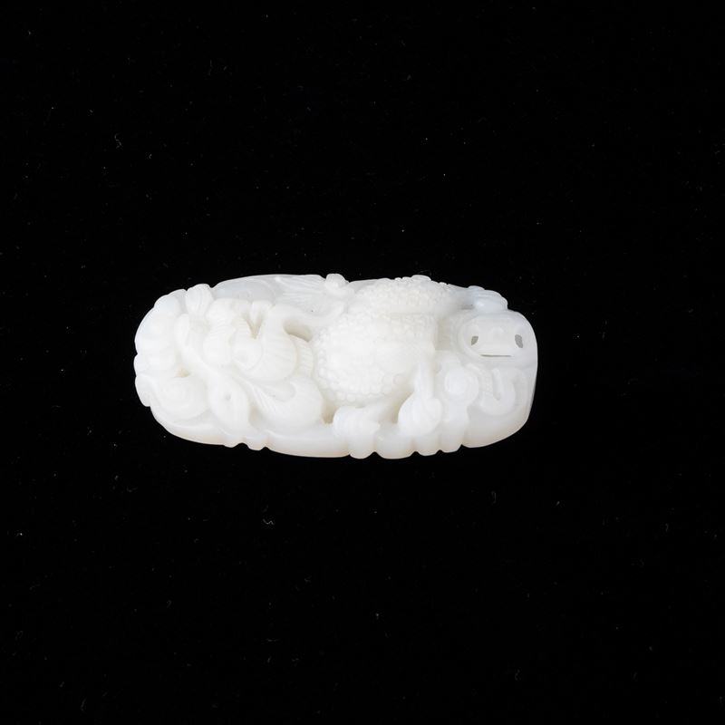 Piccolo gruppo scolpito in giada bianca con figura di drago, Cina, XX secolo