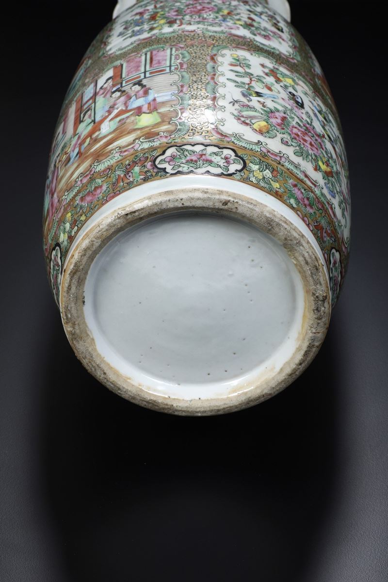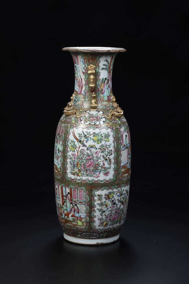 Vaso in porcellana Famiglia Rosa con decori floreali, scene di vita comune e figure di draghetti a rilievo, Cina, Dinastia [..]