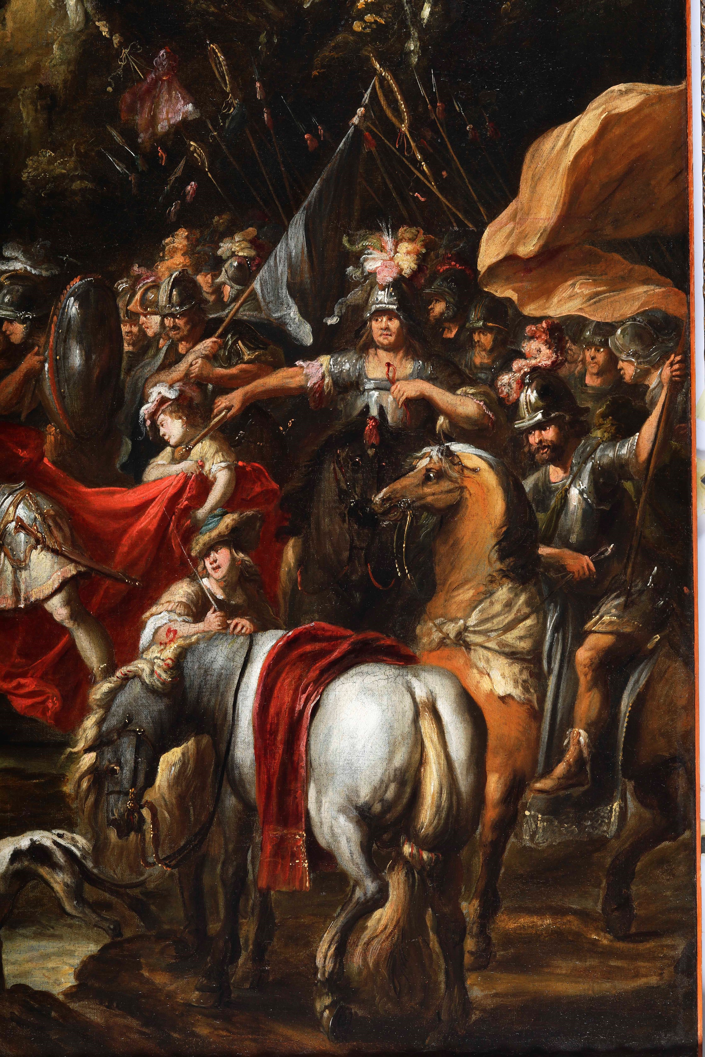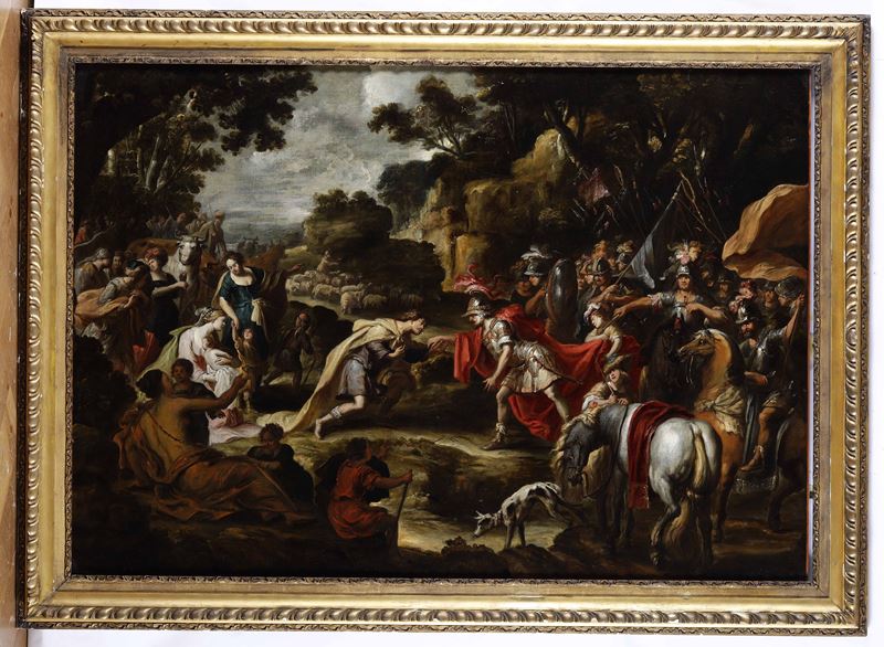 Anche qui, difatto, il formicolare innumere dei personaggi entro il paesaggio di vasto respiro, l’accostamento irriverente e provocatorio di quei brani che potremmo definire ‘di genere’, come la mandria di pecore transumante, i buoi, i cavalli dei soldati, gli scherzi dei bambini, alla gravità moralmente impegnata del soggetto da ‘grand goût’, testimoniano di quella frizzante carica umoresca, di quella ‘verve’ che mai abbandonò il tedesco. Tutti i suoi dipinti, del resto, abbandonando la tendenza semplificatoria della pittura di storia, quella cioè di poche e grandi figure colte in atteggiamenti retoricamente significativi, non conoscono un vero e proprio nucleo narrativo o drammatico, disperdendosi nella gran varietà di piccole figurine, ognuna intenta alle sue occupazioni particolari. (…)”