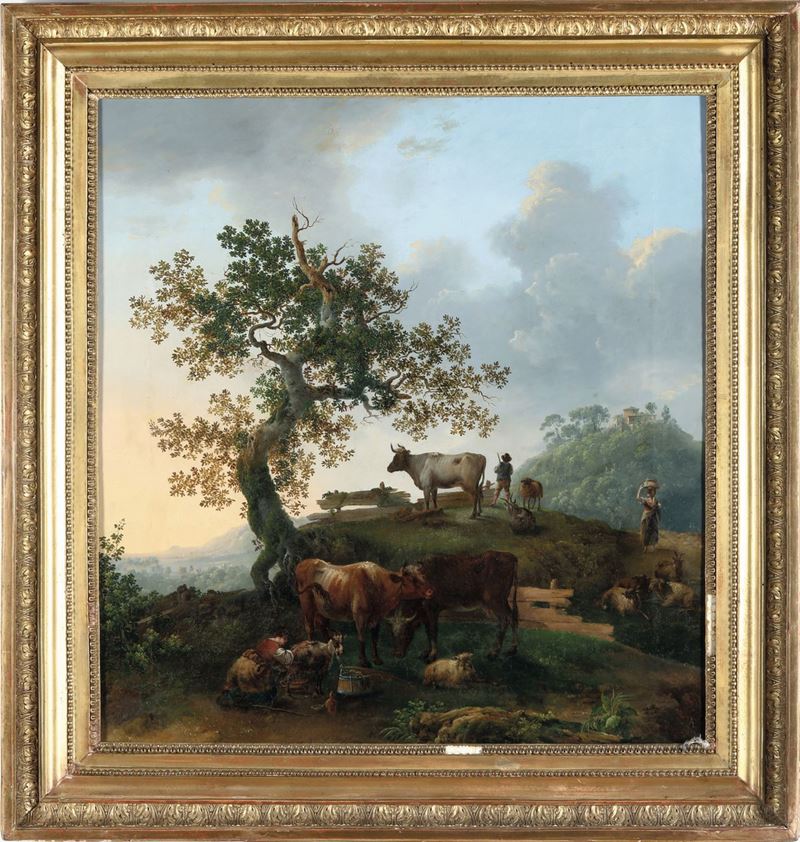 Scuola della fine del XVIII secolo Paesaggi con pastori e armenti