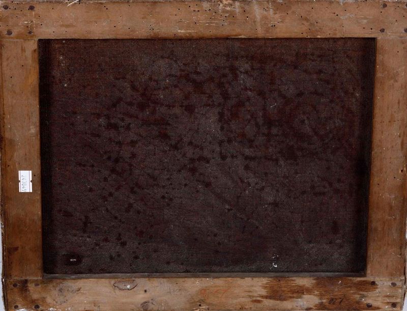 Scuola fiamminga del XVII secolo Scena di interno con donna davanti al camino