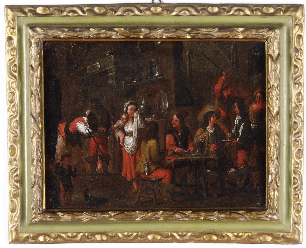 Scuola fiamminga del XVII secolo Scene di genere con popolani