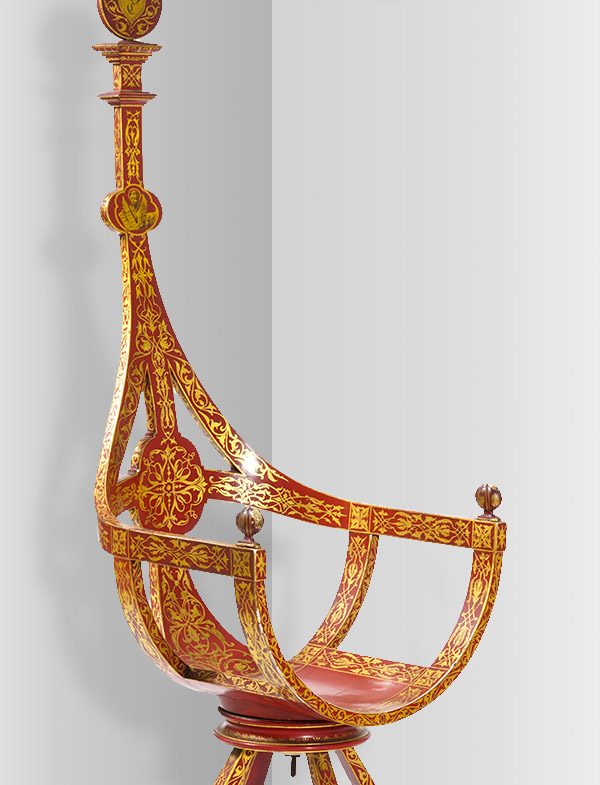 misure sedie: L 58 cm; H 127,5 cm; P 55 cm. misure cassettone: L 136,5 cm; H 97 cm; P 60,5 cm.