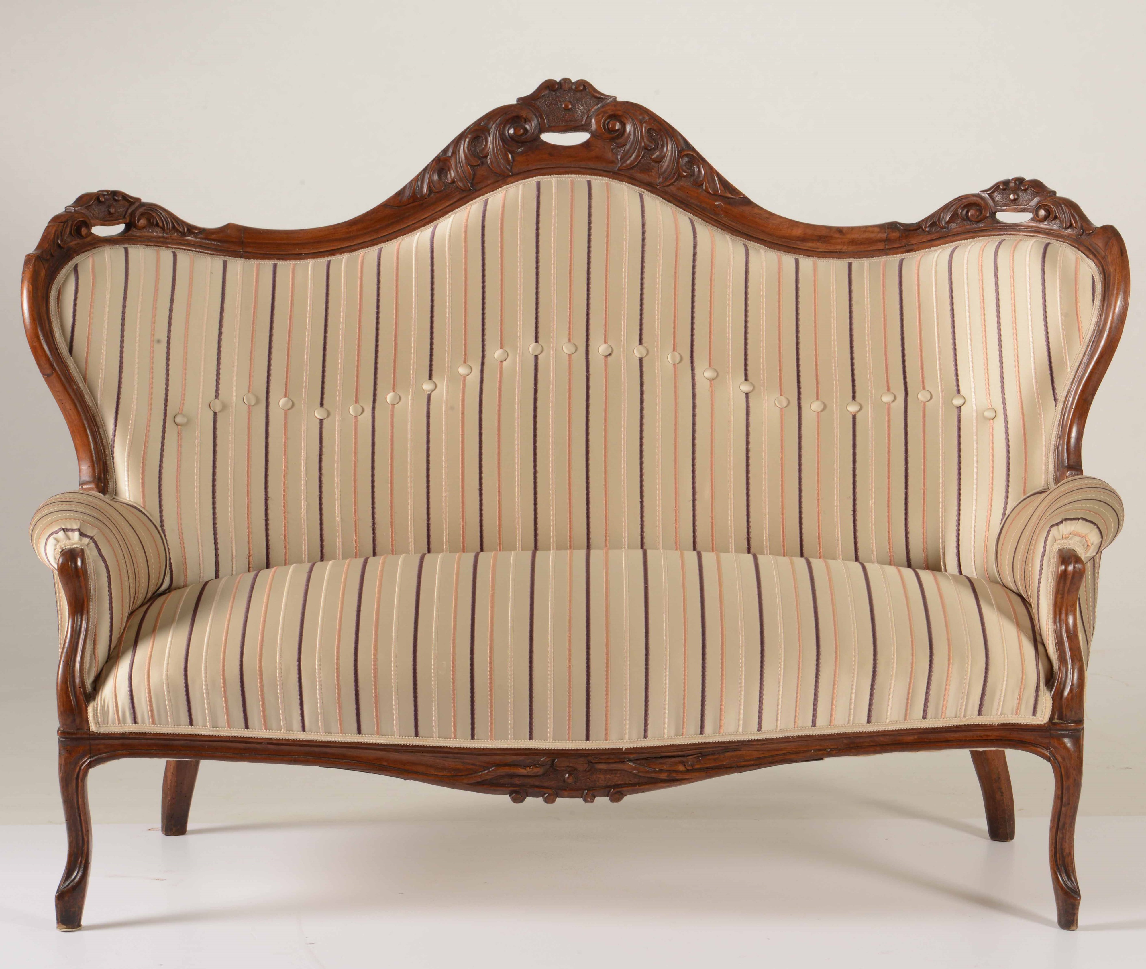 Divano Luigi Filippo in legno intagliato. XIX secolo