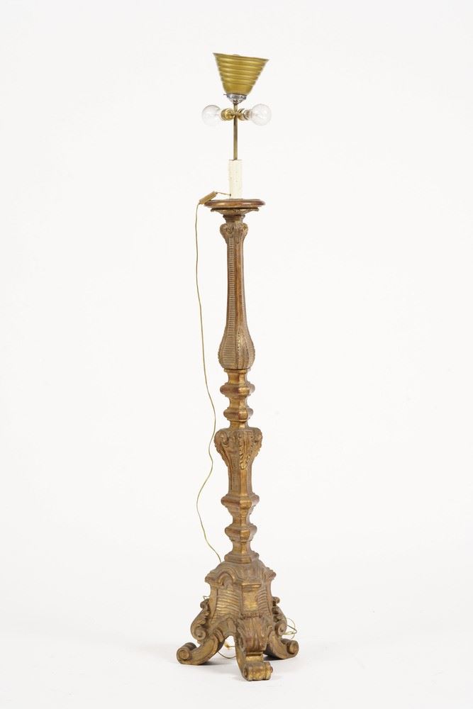 Lampada da terra in legno intagliato e dorato. XIX secolo