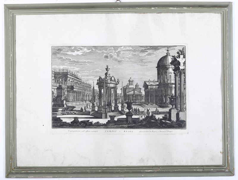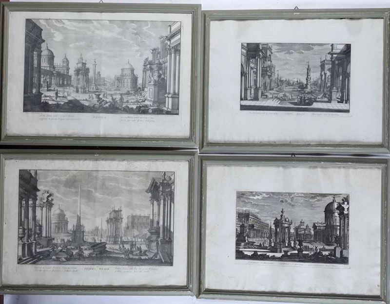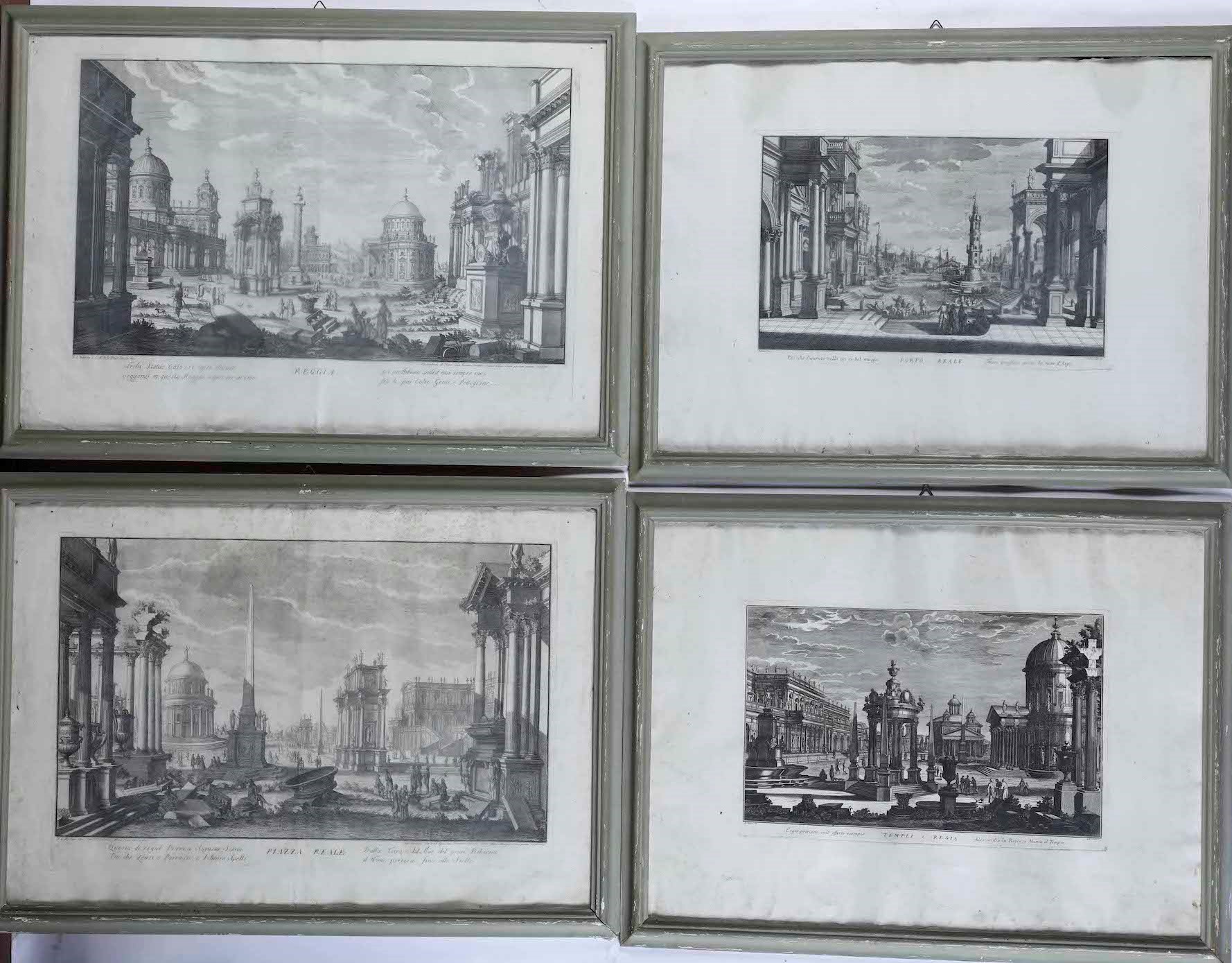 Nove stampe da Bibbiena con vedute di città e paesaggi, XVIII secolo