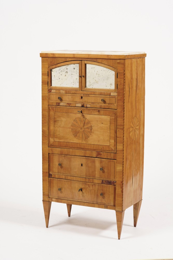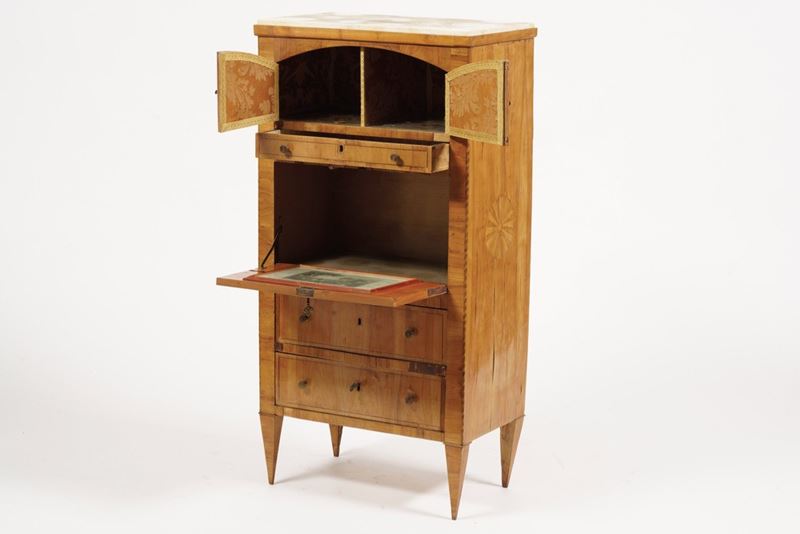 Secretaire Biedermeier in legno intarsiato. XIX secolo