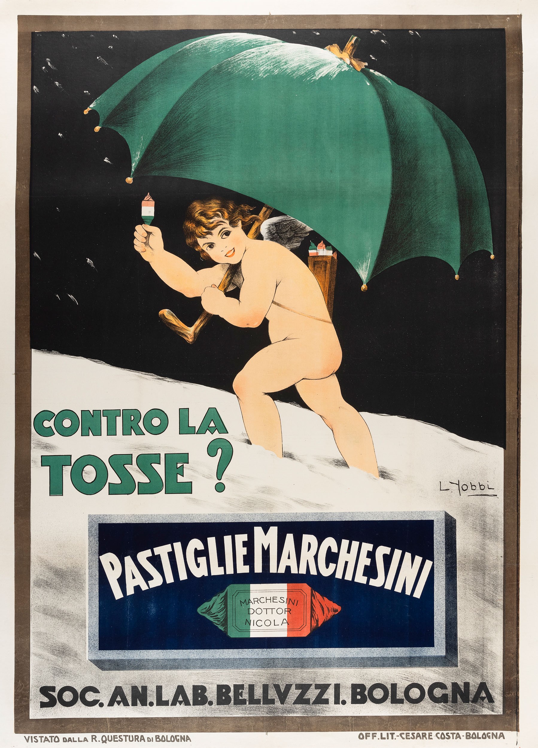 Affisso litografico, 1925 . Impresso da Officine Litografiche Cesare Costa - Bologna. Cm 139,5 x 100. Telato. Qualità A-