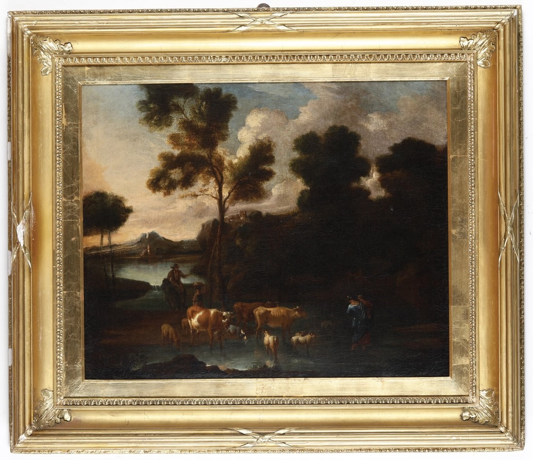 Scuola del XVIII secolo Paesaggio con pastori e armenti