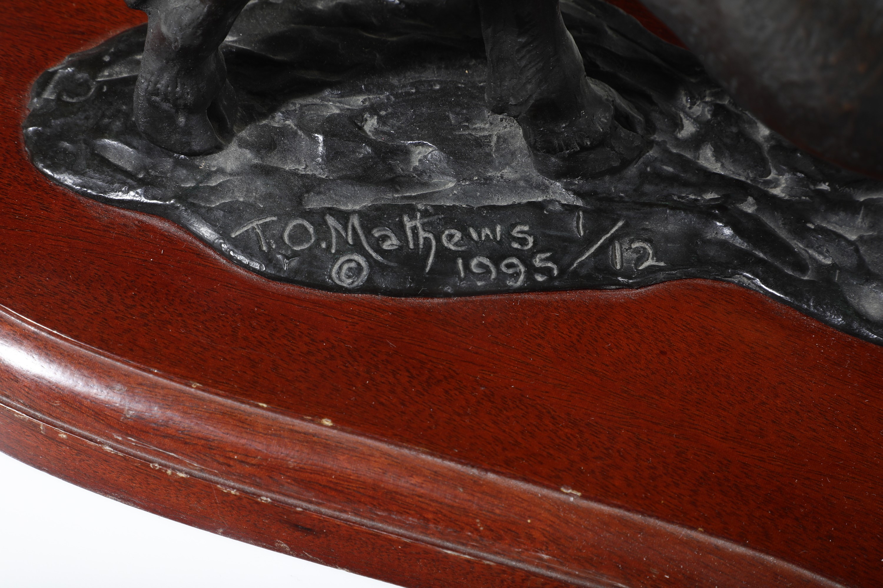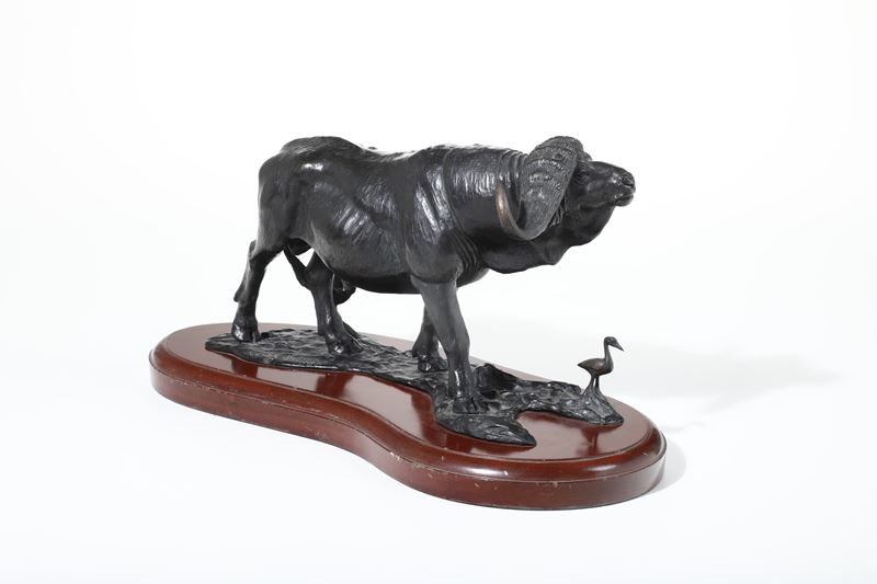 Bronzo fuso e patinato e legno