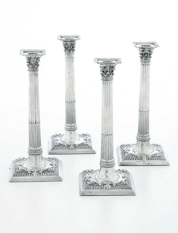 Argento fuso sbalzato e cesellato. Ampolle in vetro molato (non coeve)