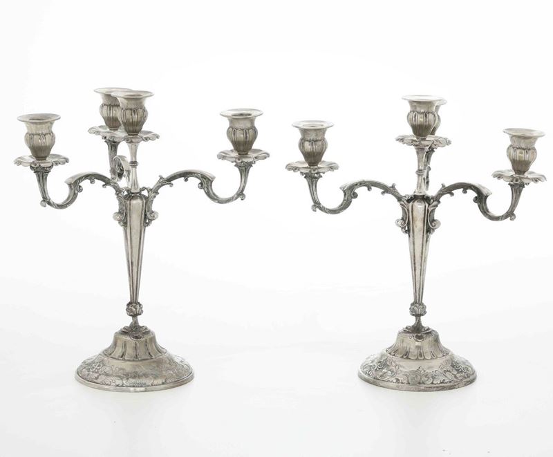 Coppia di candelabri. Argenteria italiana del XX secolo