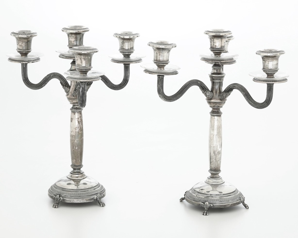 Coppia di candelabri a 4 luci. Argenteria italiana del XX secolo, argentiere Cesa, Alessandria
