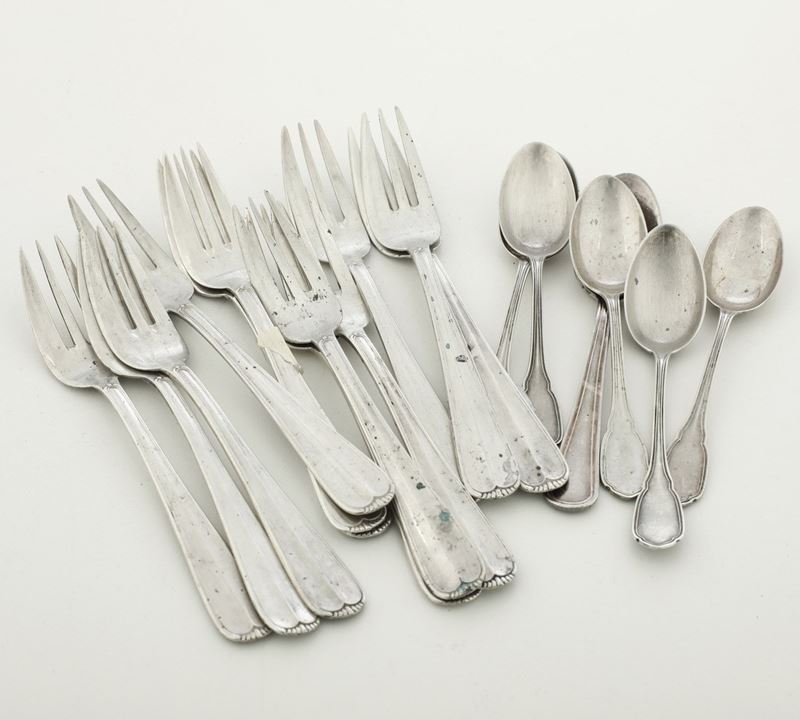 Insieme di forchettine e di cucchiaini da dolce. Argenteria italiana del XX secolo
