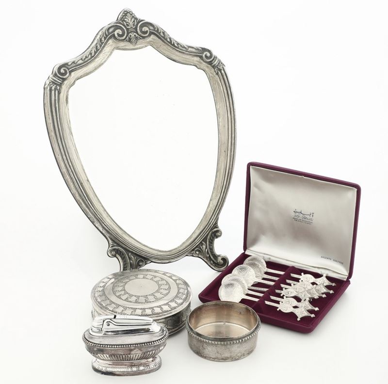 Lotto di oggetti in argento e metallo argentato. XX secolo