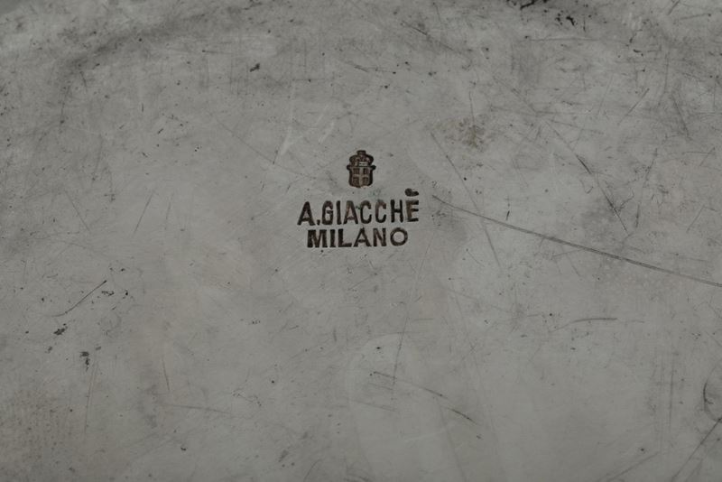 Portavivande in metallo argentato. A. Giacchè, Milano