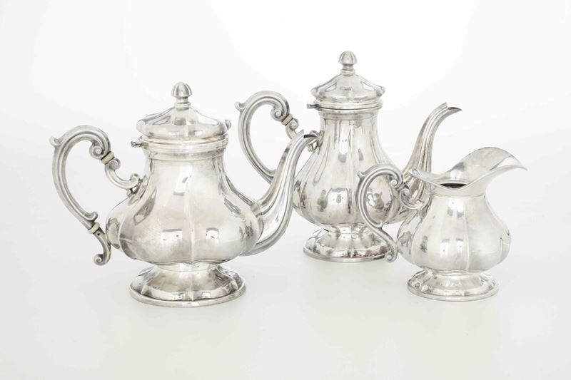 Servizio da tè e caffé. Argenteria italiana del XX secolo, argentiere Gianni Pietrasanta, Alessandria