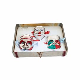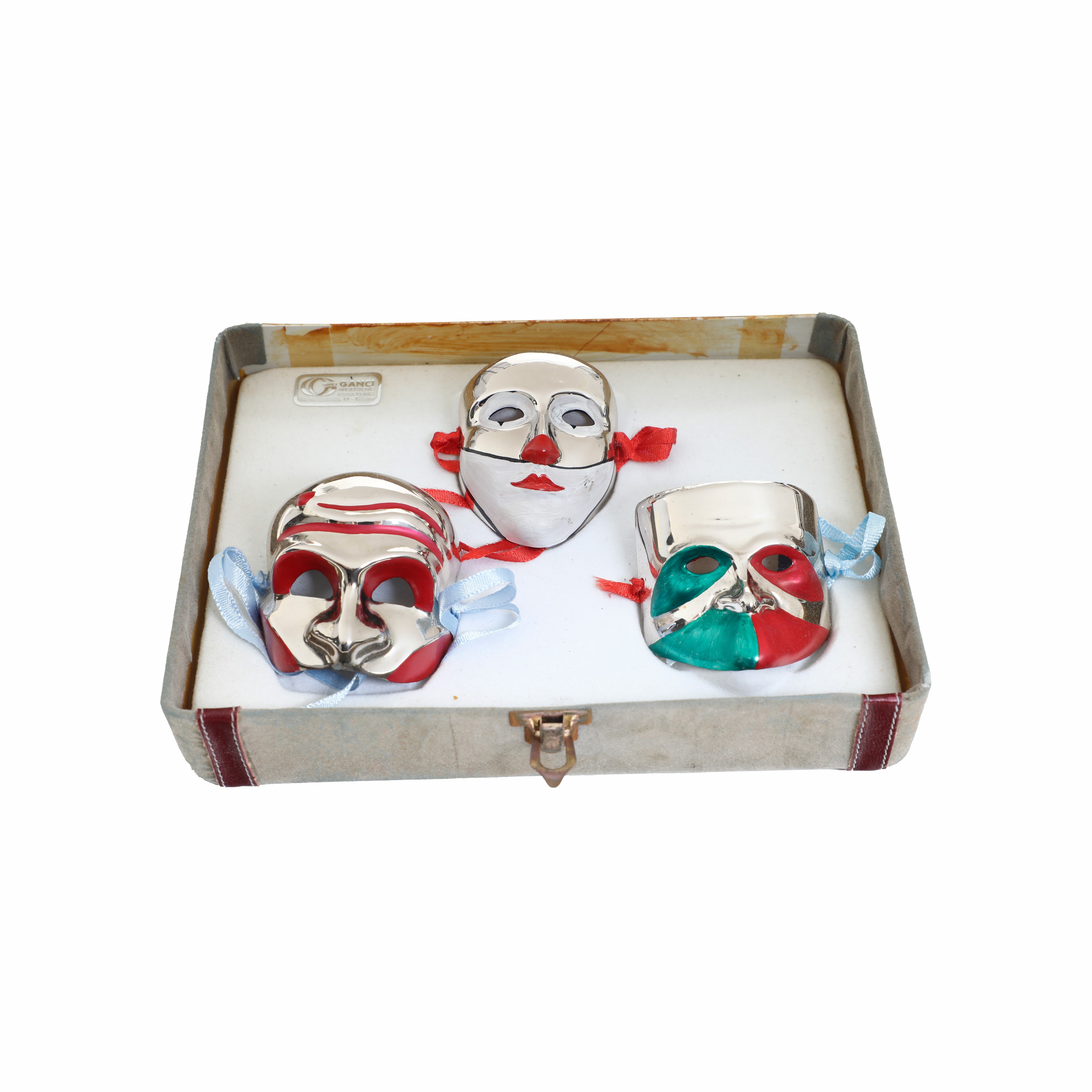 Tre maschere in argento e smalto. Argenteria Ganci Milano