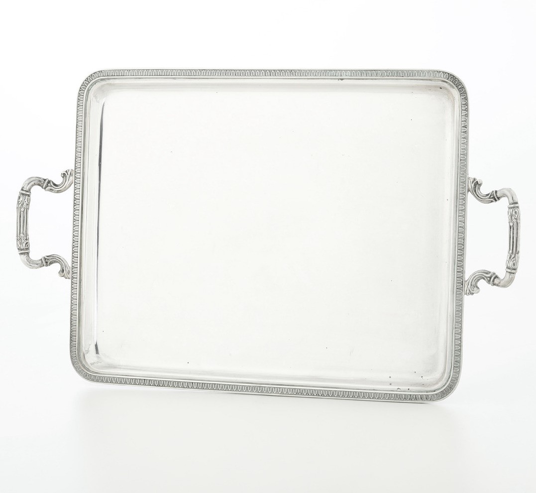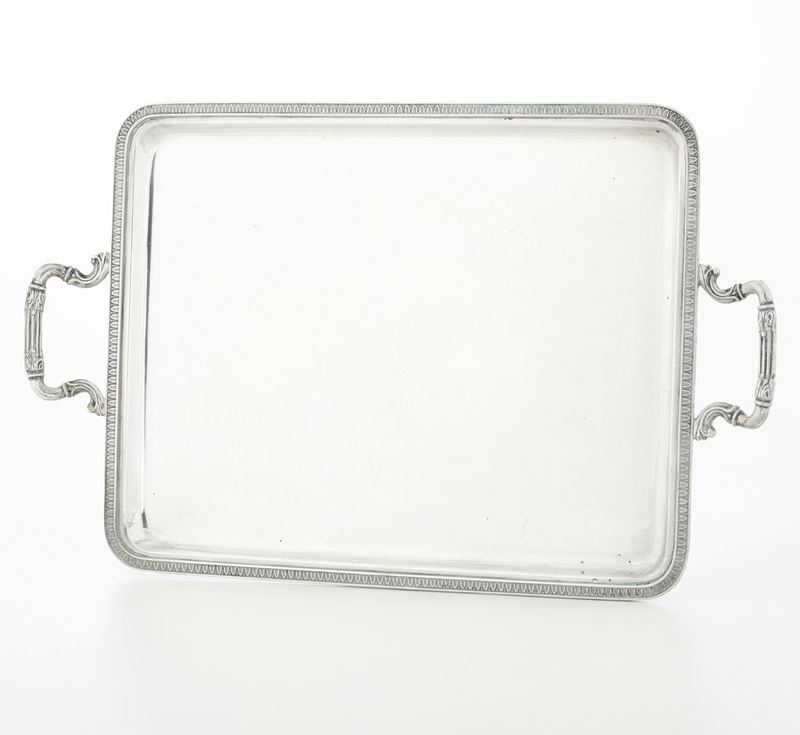 Vassoio biansato in stile neoclassico. Argenteria italiana del XX secolo