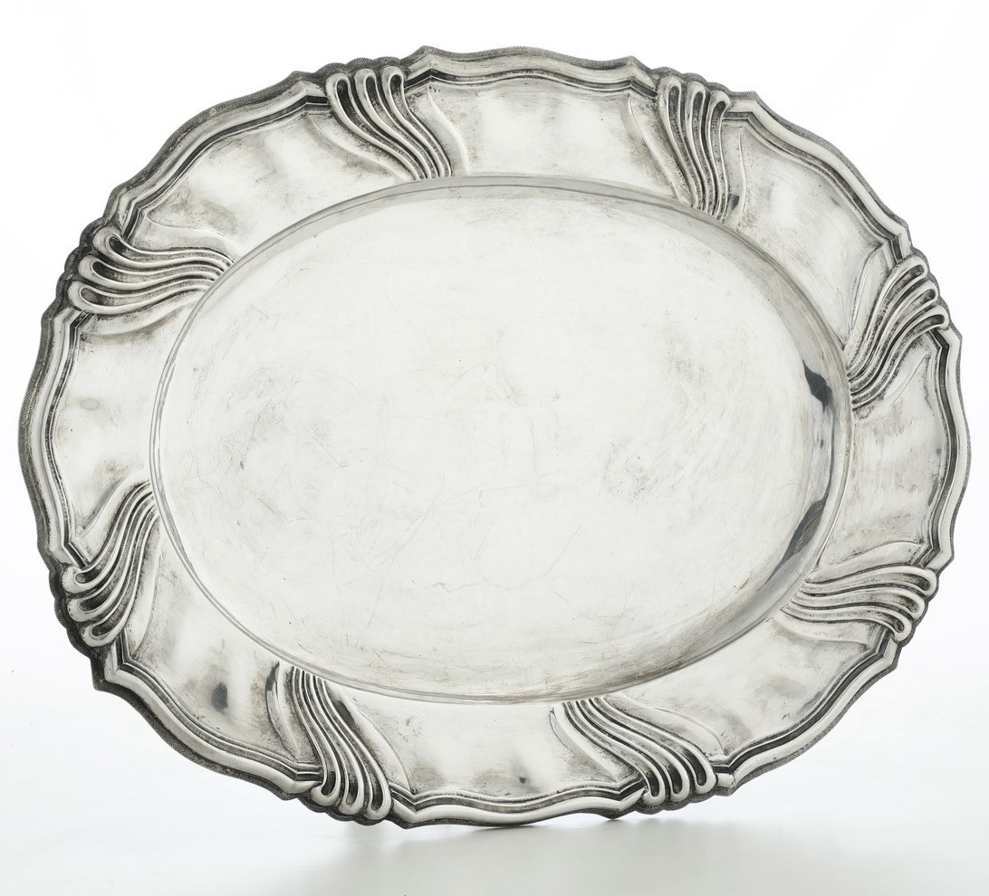 Vassoio ovale. Argenteria italiana del XX secolo, apparentemente privo di punzonatura