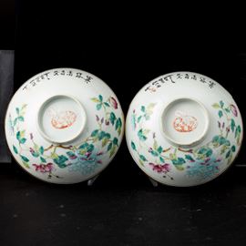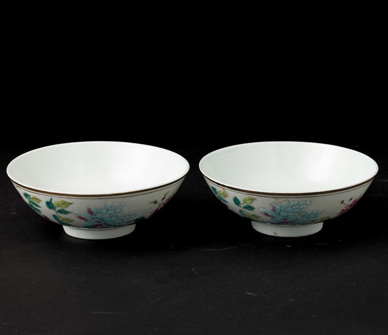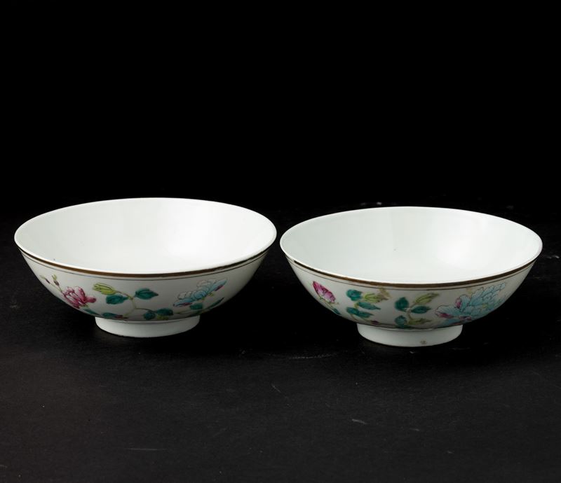 Coppia di ciotole in porcellana con decori floreali, Cina, XIX secolo