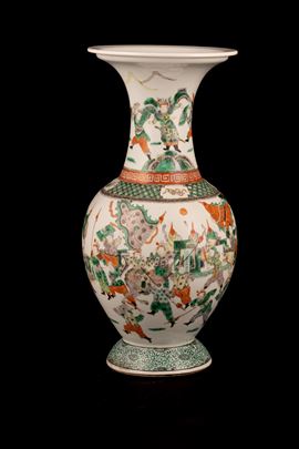 Vaso in porcellana Famiglia Verde con scena di battaglia, Cina,