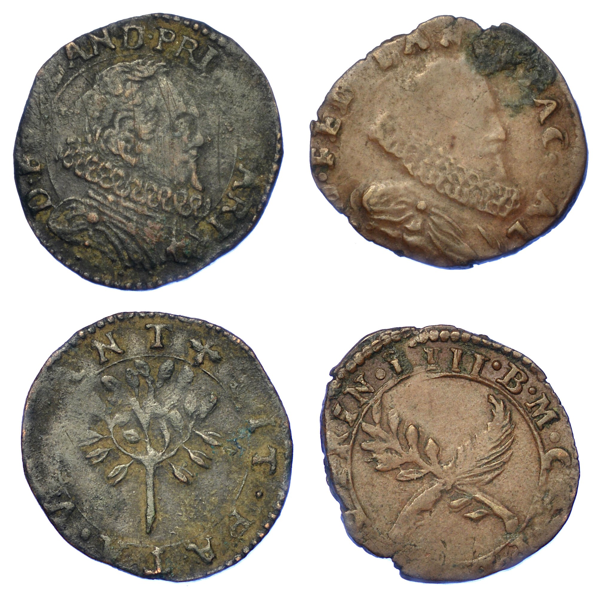FEDERICO LANDI, 1590-1630. Sesino (2 esemplari di differenti tipologie). MIR 93(raro)-95(raro). Rame. MB/q.BB