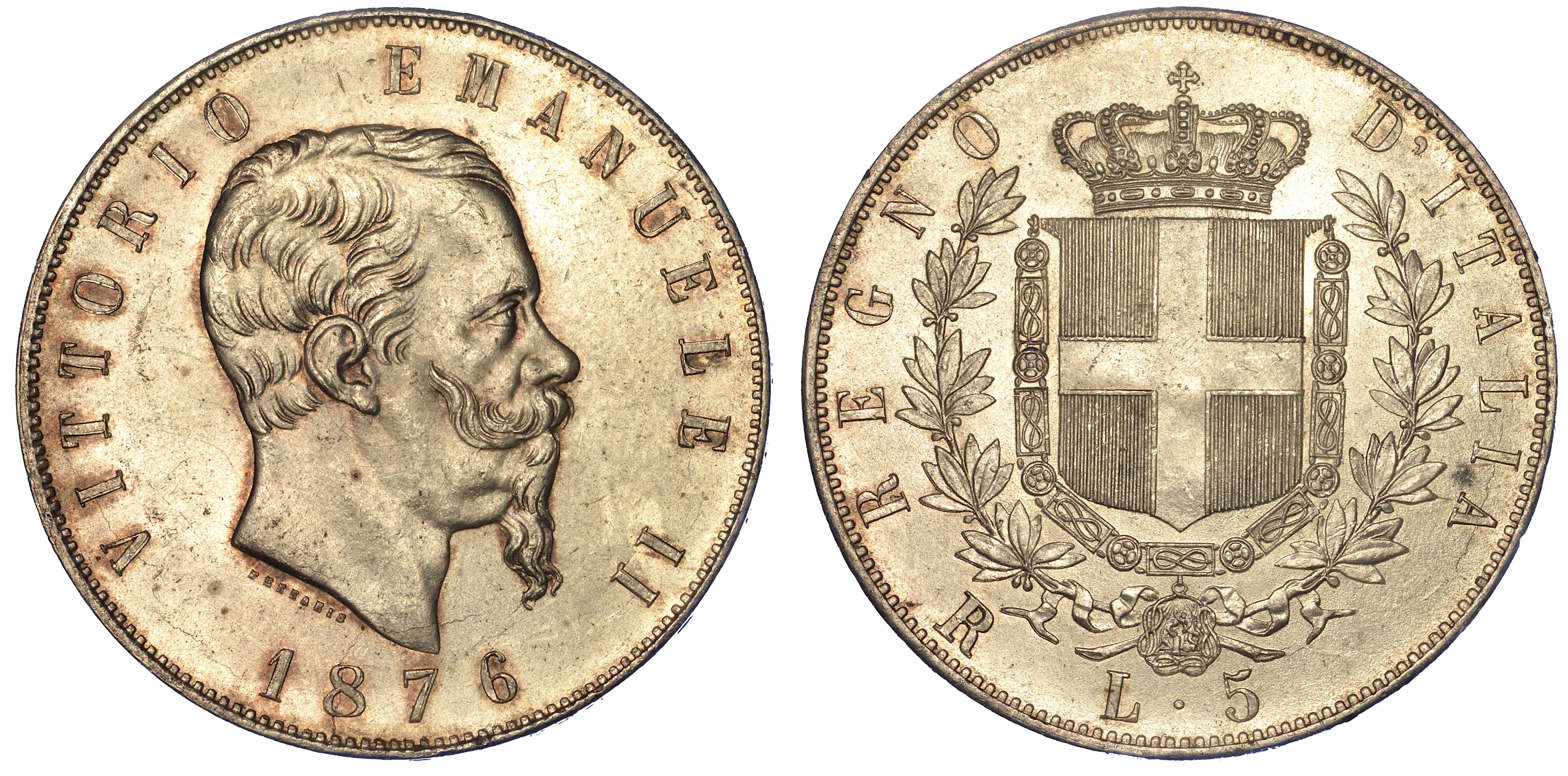 REGNO D’ITALIA. VITTORIO EMANUELE II DI SAVOIA, 1861-1878. 5 Lire 1876. Roma.