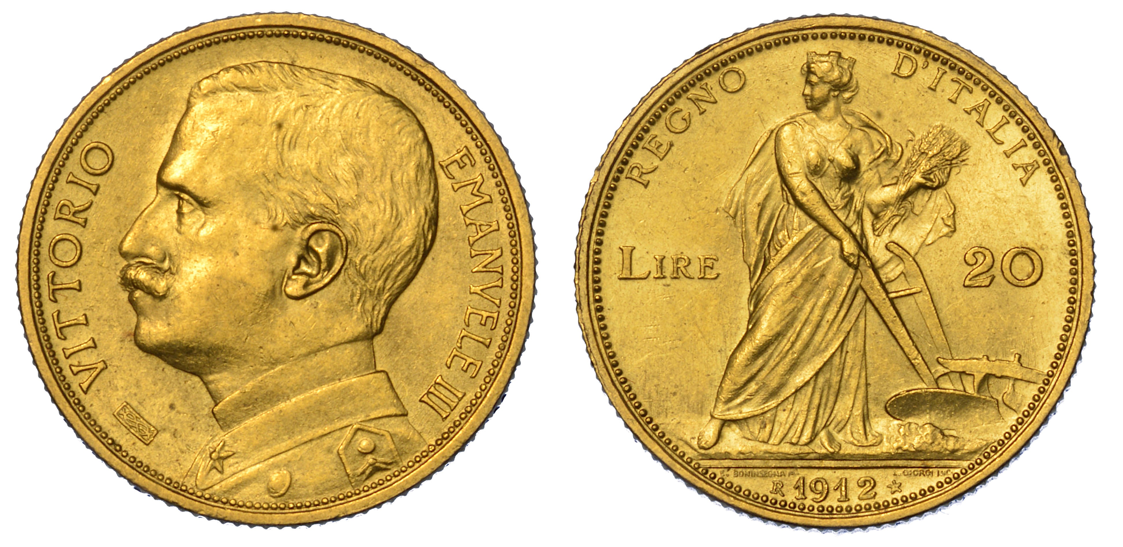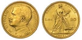 REGNO D'ITALIA. VITTORIO EMANUELE III DI SAVOIA, 1900-1946. 20 Lire 1912. Aratrice.