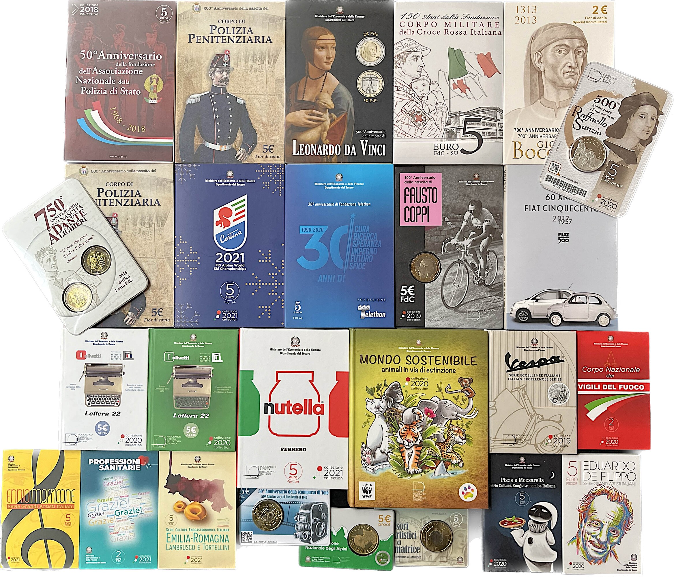 Esemplari in astucci e scatole originali della zecca.