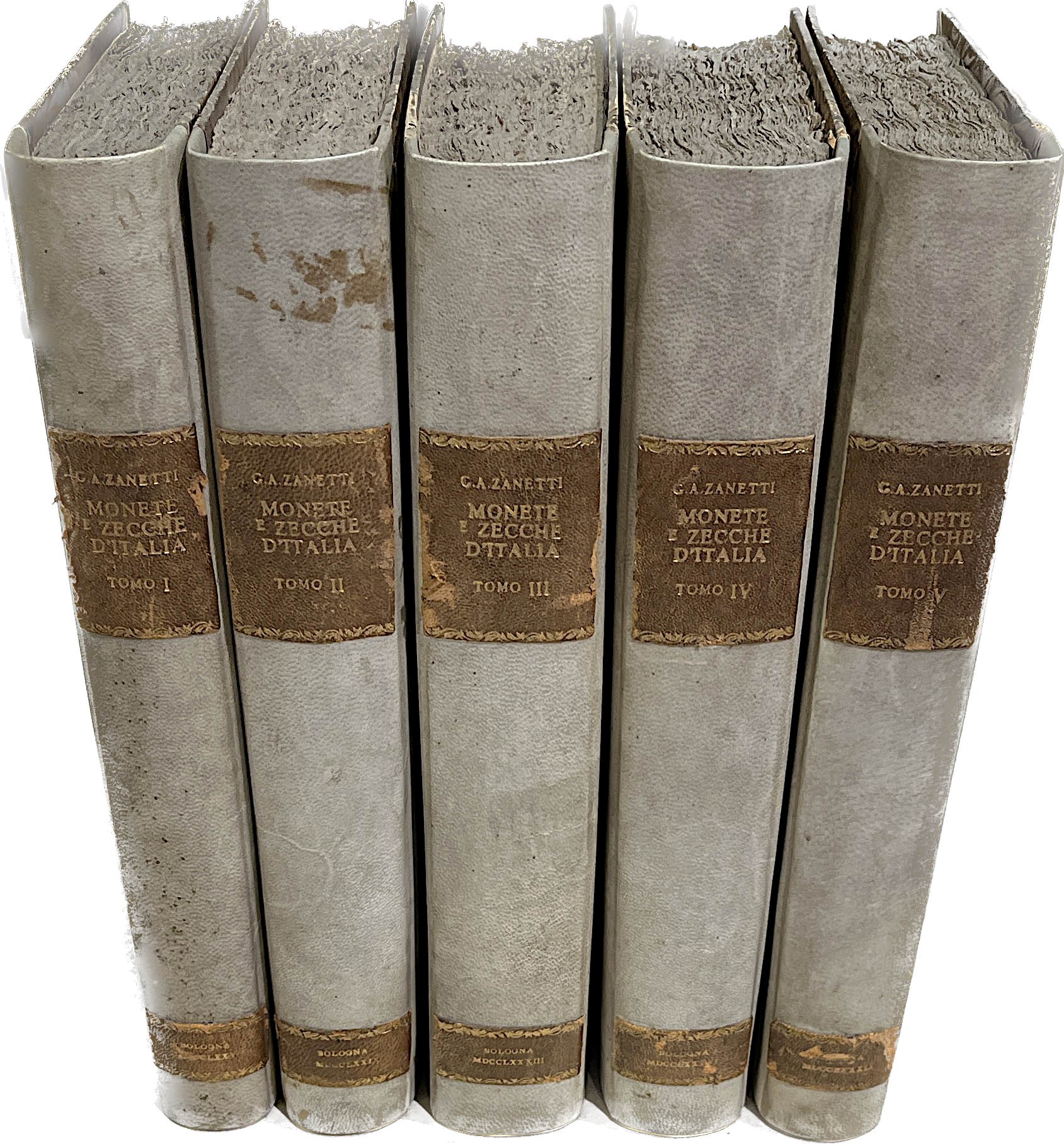 Bologna, 1775-1789. Opera completa in cinque volumi per complessive 2.526 pp. e 63. tavv. Formato in 4° circa cm. 23x33. Rilegatura in mezza pergamena. Condizioni buone.