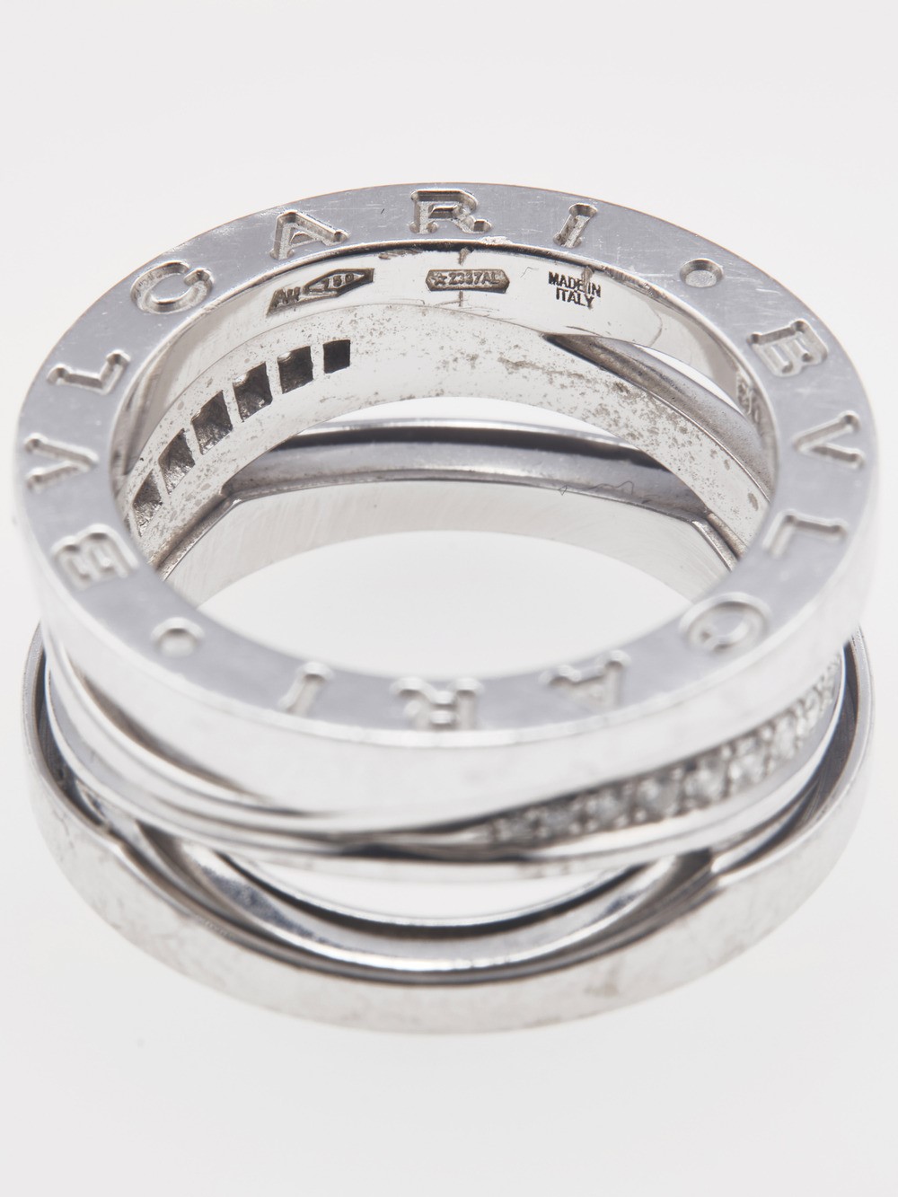 Bulgari. Lotto composto da tre anelli modelli “Parentesi” “B.zero1 Legend” e “Bulgari Bulgari” con diamanti