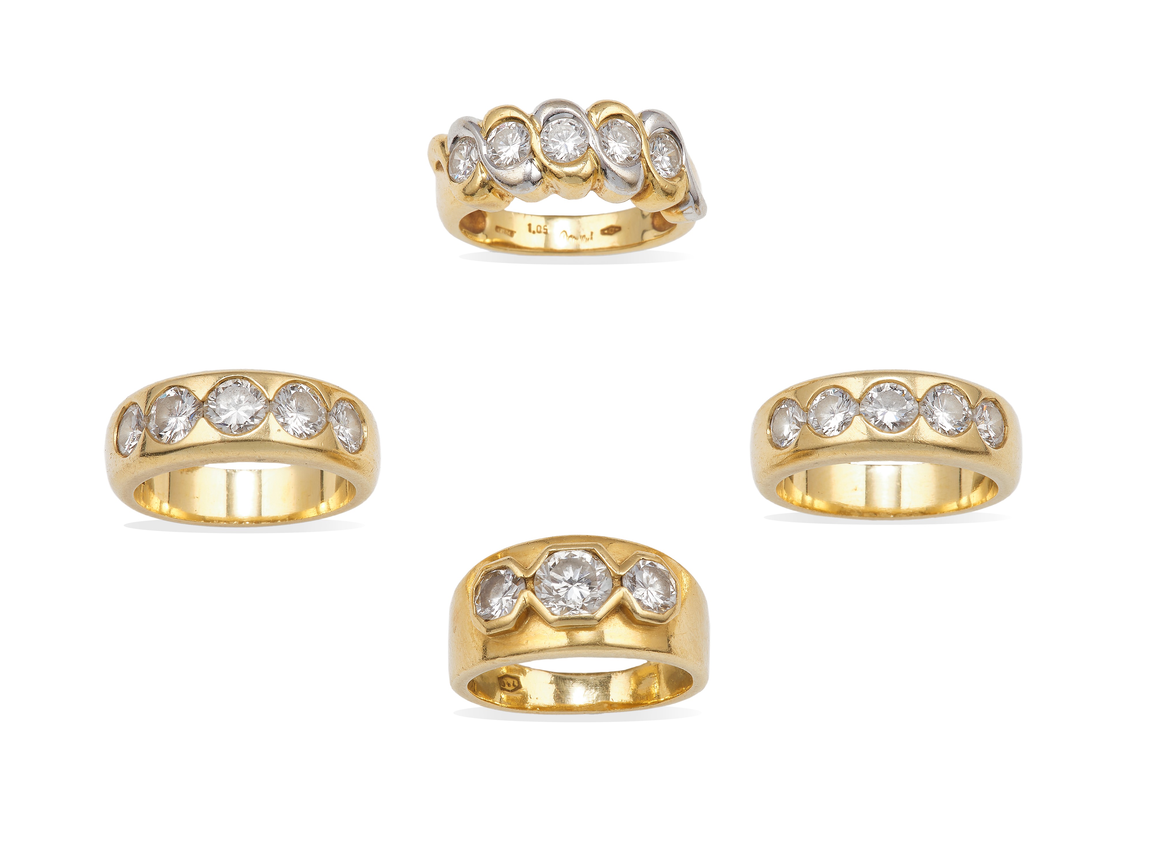 coppia anelli cinque pietre gr. tot. 18,7 m. italiana 15 (EU 55)