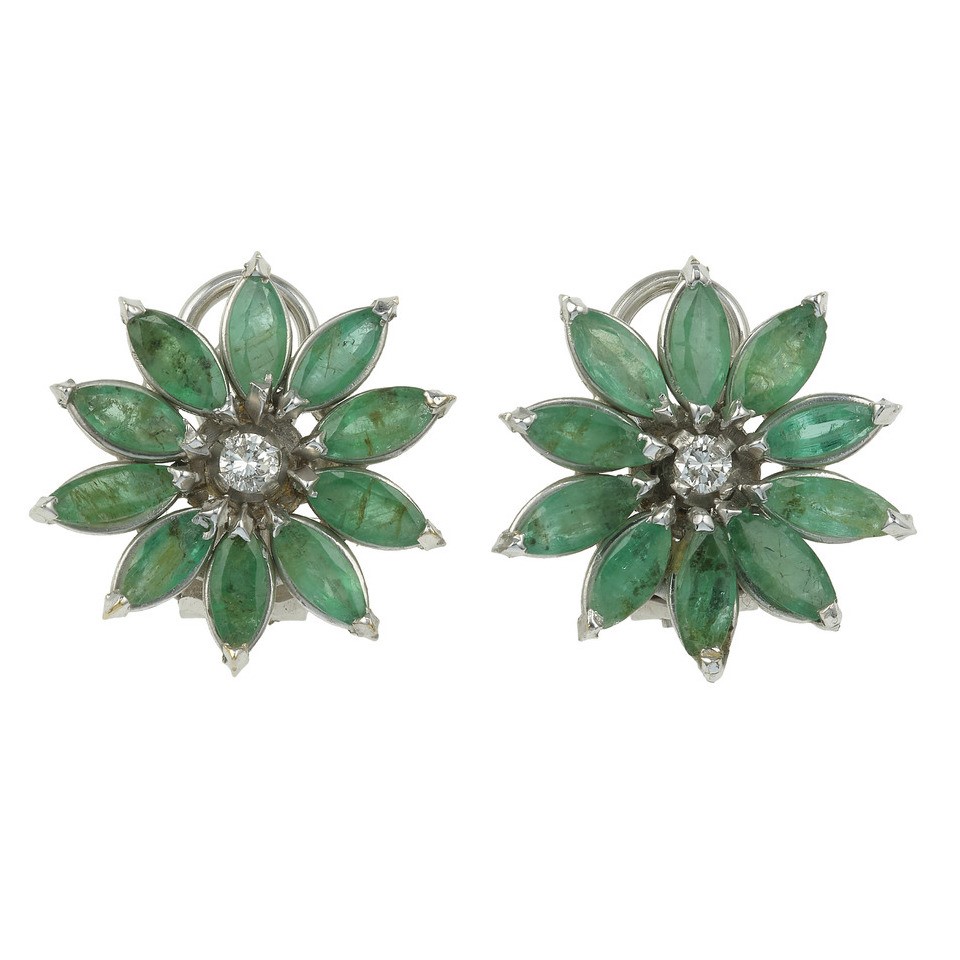 Orecchini con smeraldi taglio navette e diamanti centrali