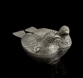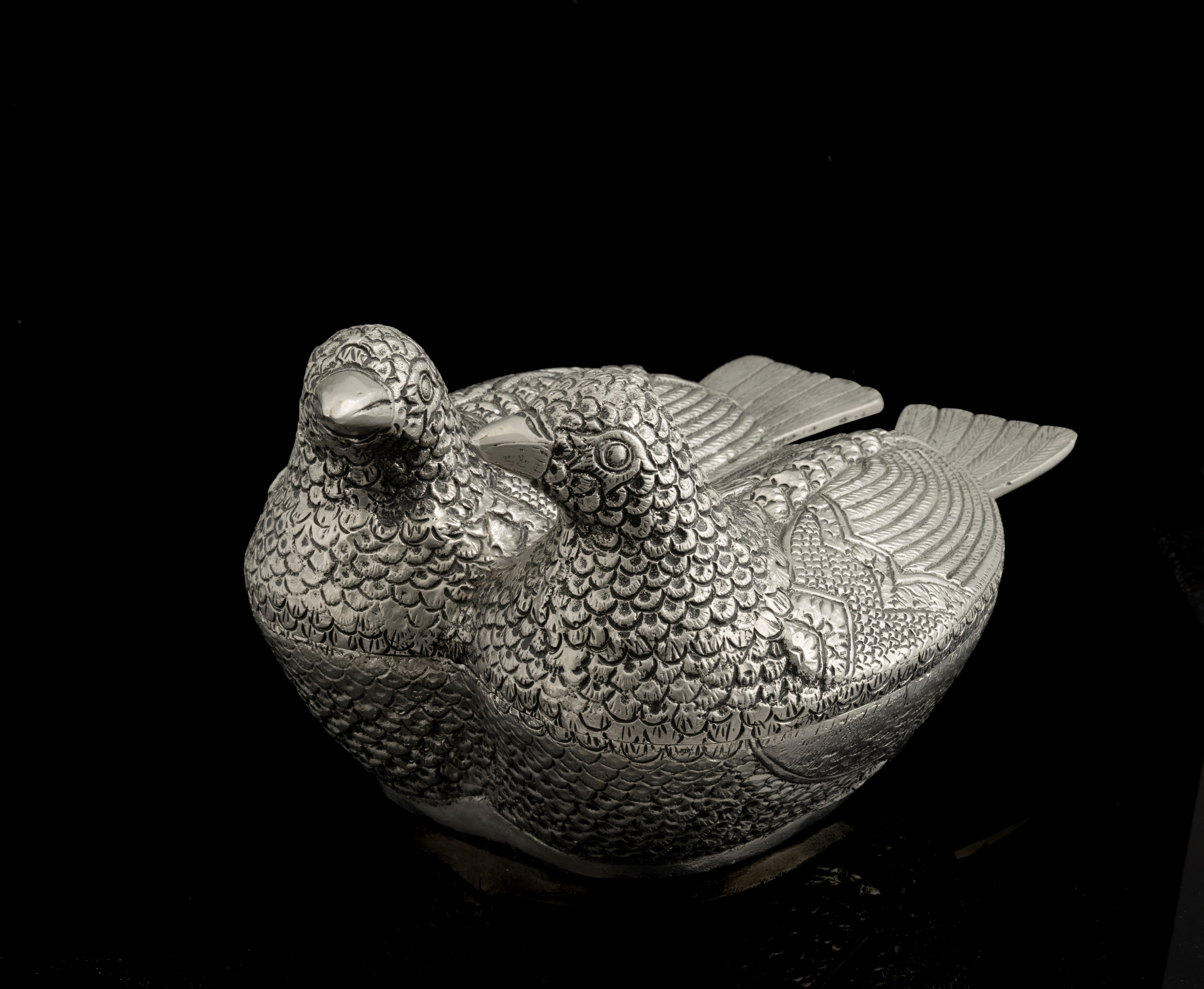 Struttura in metallo argentato a figura di colombine.