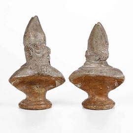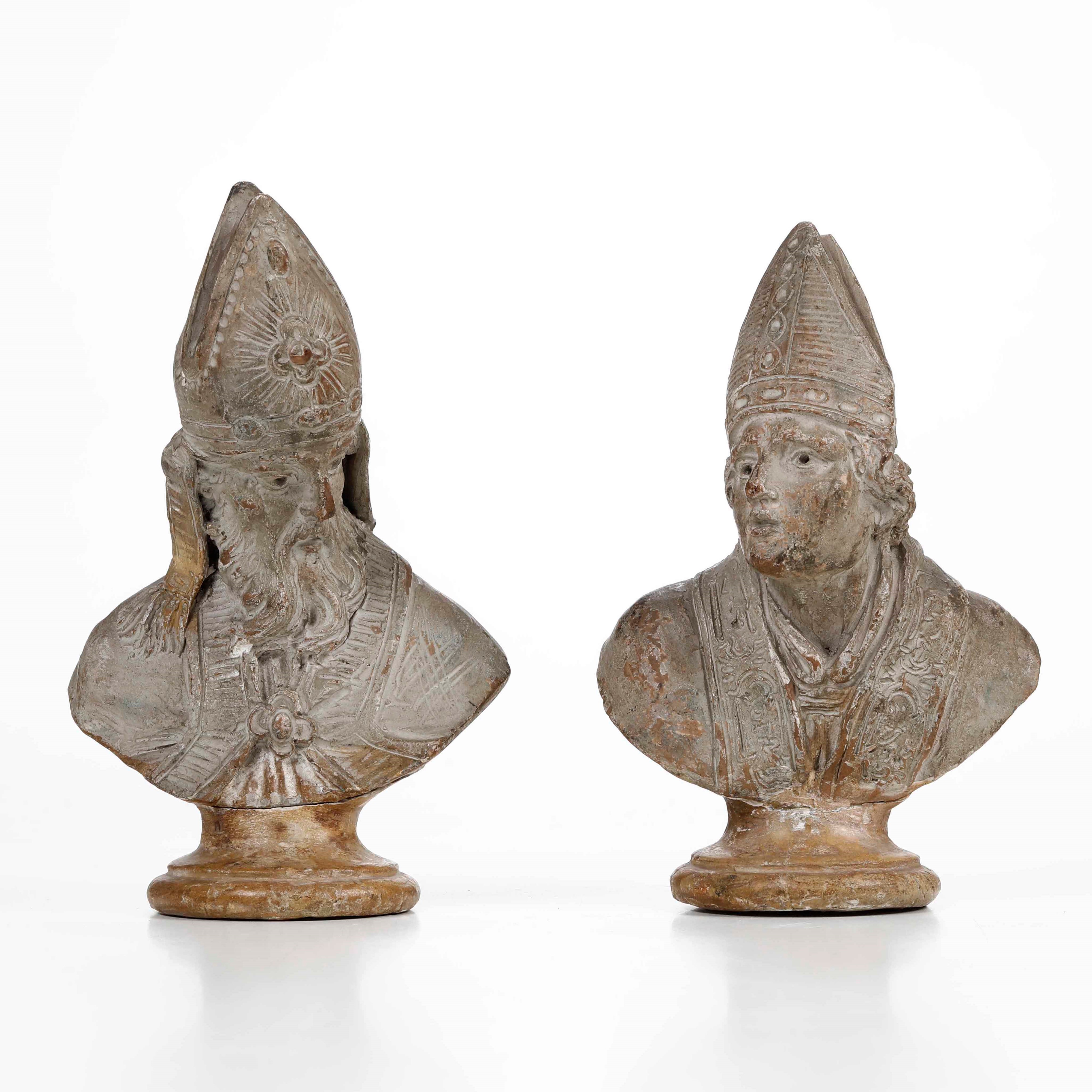 Coppia di busti in terracotta con base in gesso. XVIII-XIX secolo, siglati PL