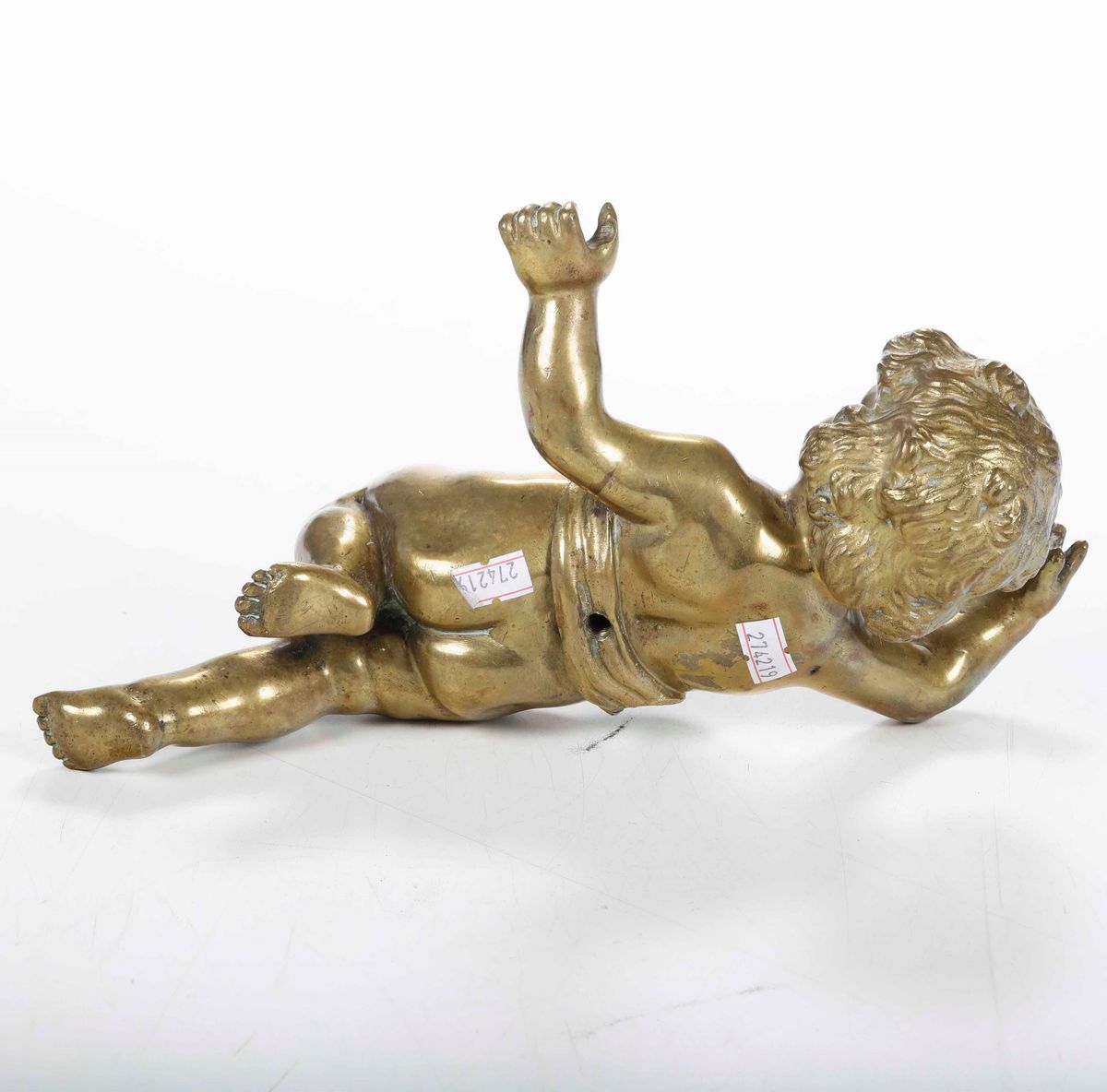 Putto in bronzo dorato. Arte barocca del XVII-XVIII secolo