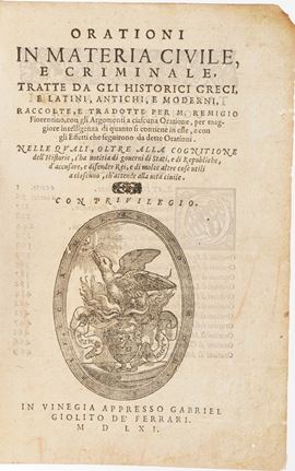 AAVV-Remigio Fiorentino Orazioni in materia civile e criminale...Venezia Giolito 1561