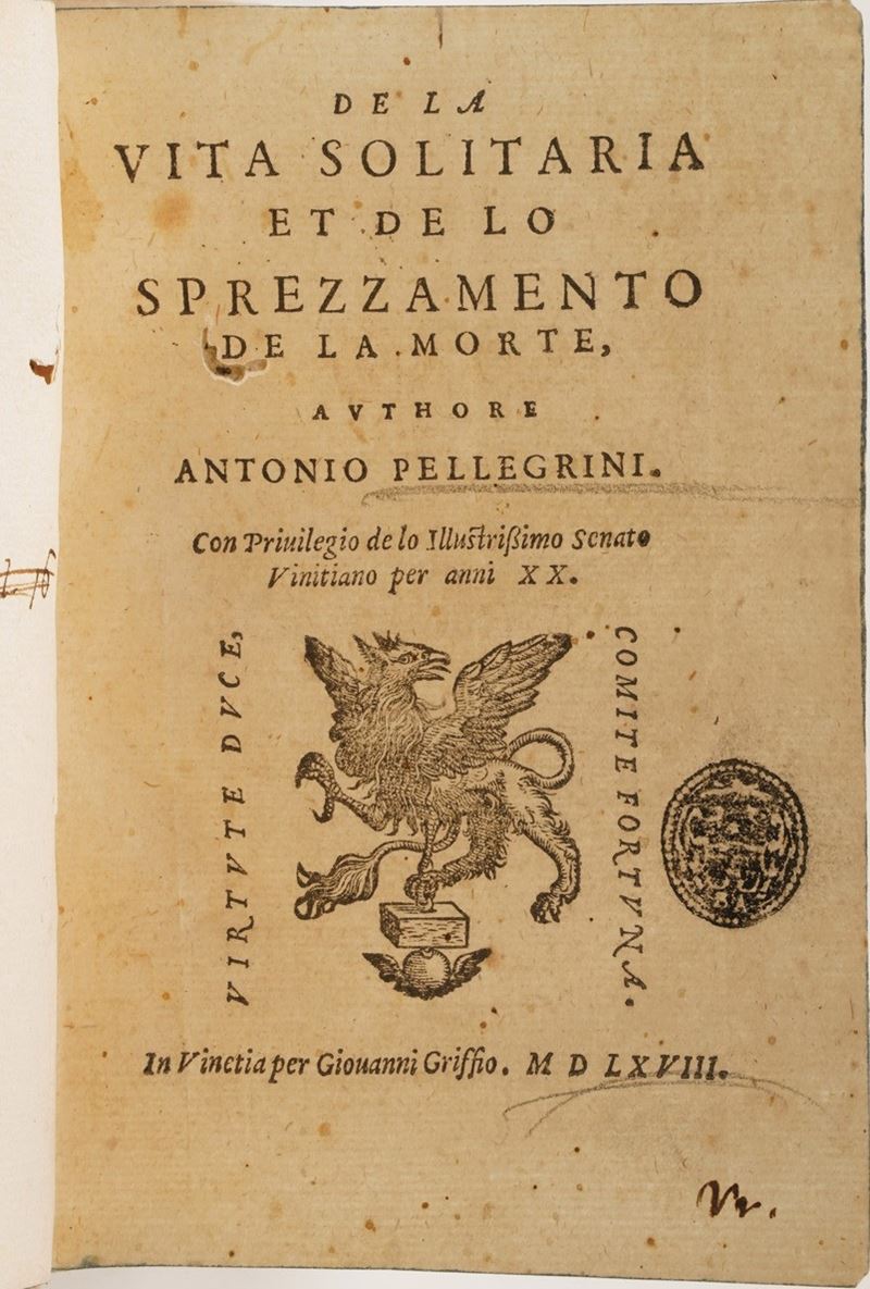 Antonio Pellegrini Della vita solitaria et de lo sprezzamento della morte...Venezia, 1548