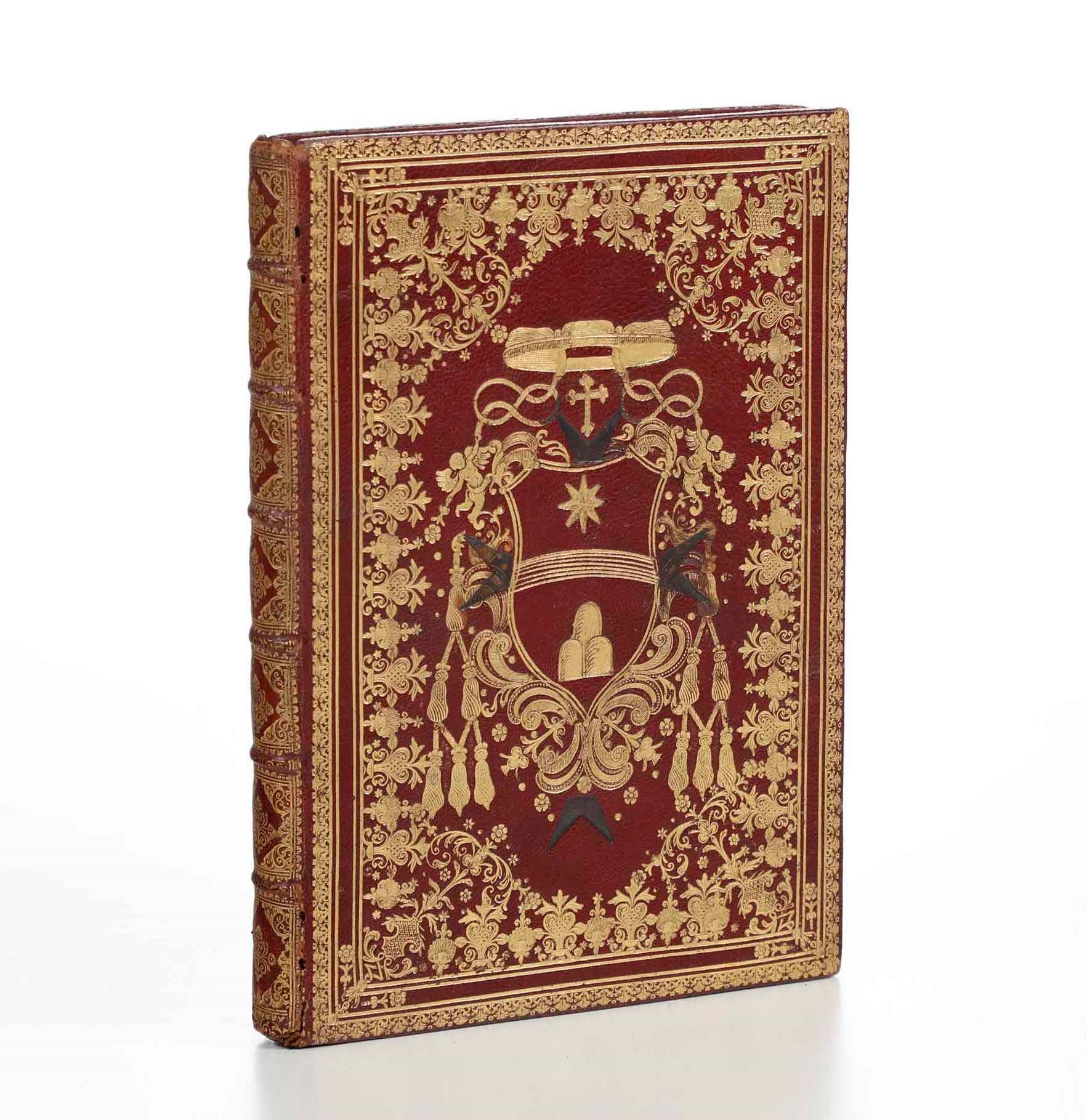 In quarto. Bella rilegatura coeva in marocchino rosso. Armi cardinalizie e croce di Malta ai due piatti