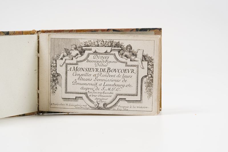 In-12°. Rilegatura antica in pergamena rigida. Si uniscono al lotto 1: Un piccolo album di incisioni dal titolo seguente: "Divers desseins de figures dedies a monsieur de boucoeur"... Paris 1679 raccolta di 19 piccole incisioni più un frontespizio inciso. Rilegatura in carta decorata del secolo XIX. 2: Piccolo manualetto di cambio tra la lira italiana e quella veneta