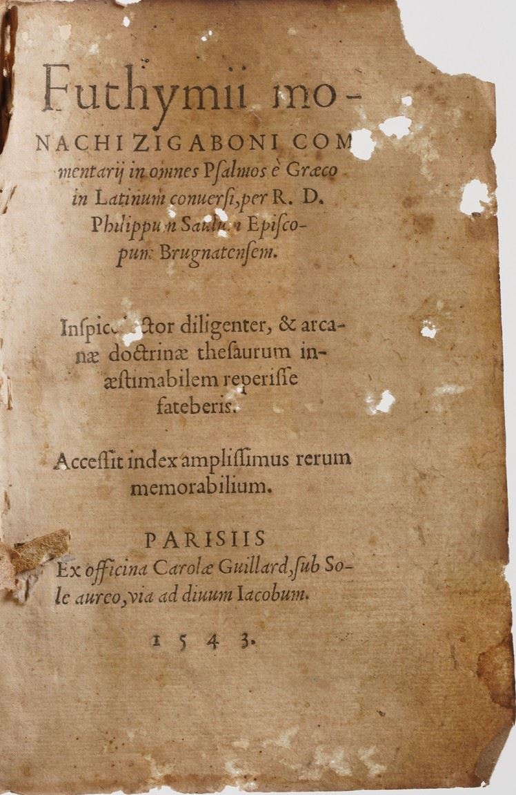 Futhymii Monachi Zigaboni Commentarii in omnes salmo e graecum in latinum... Parigi, Carlo Guillard 1543.