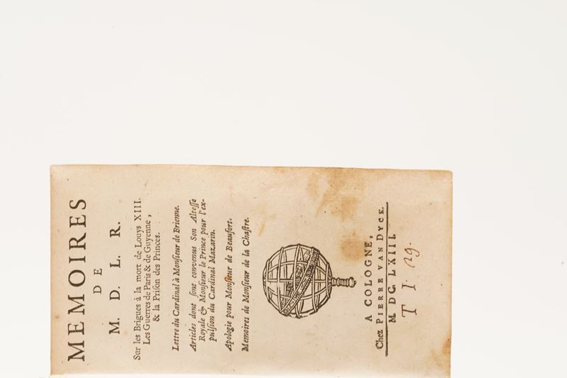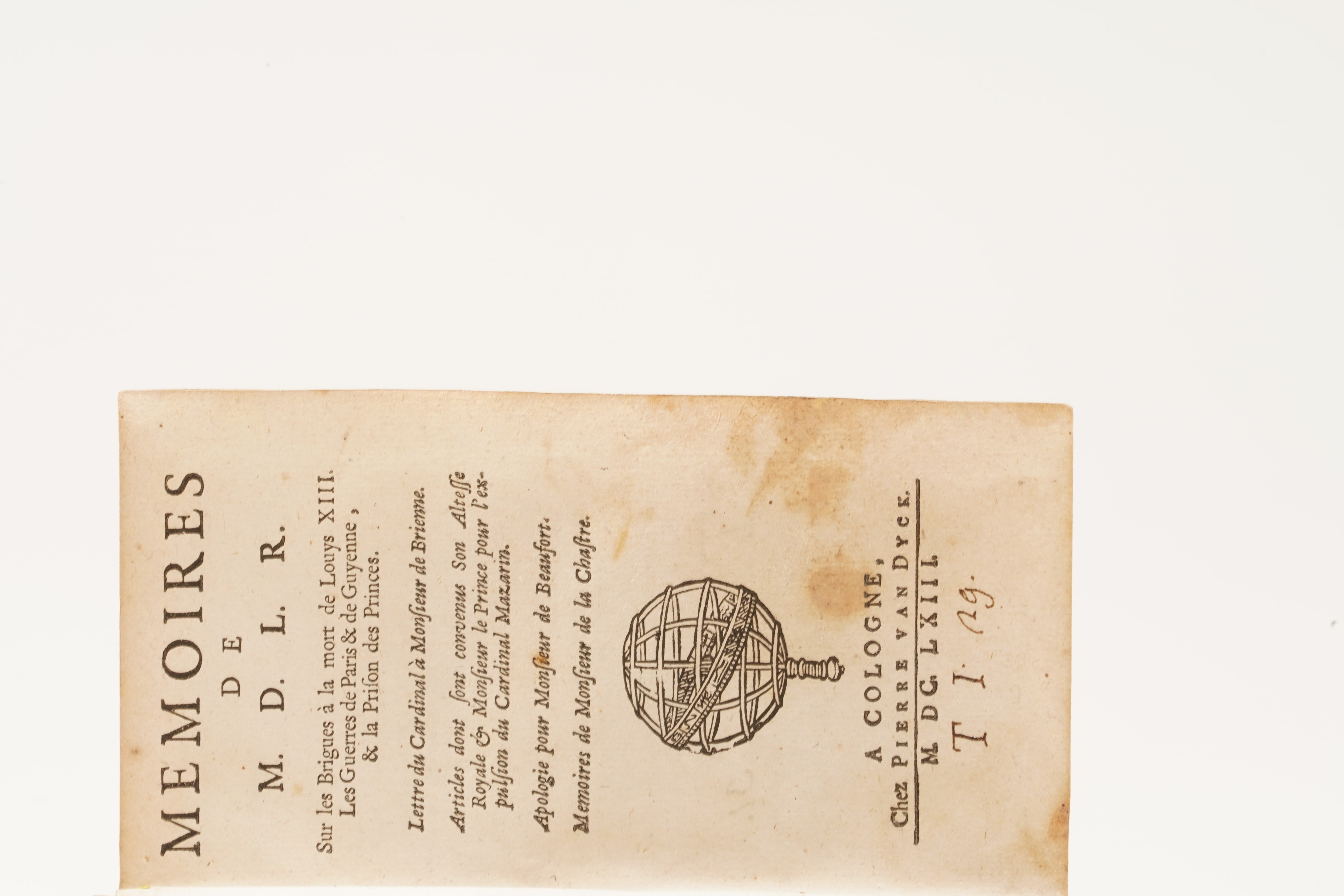 Si agiungono al lotto: Memoires de M.D.L.R., Colonia, 1663; Giuseppe Carpano, sentimenti sacri e morali, Roma, 1680; Giofrancesco Loredano, scherzi geniali, Macerata, 1635.