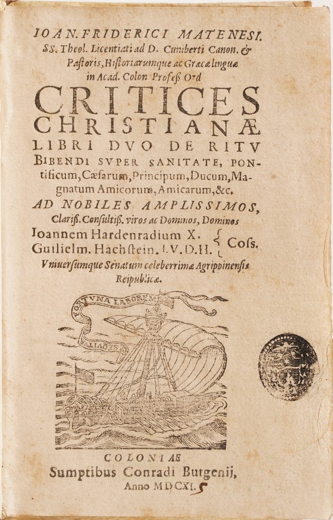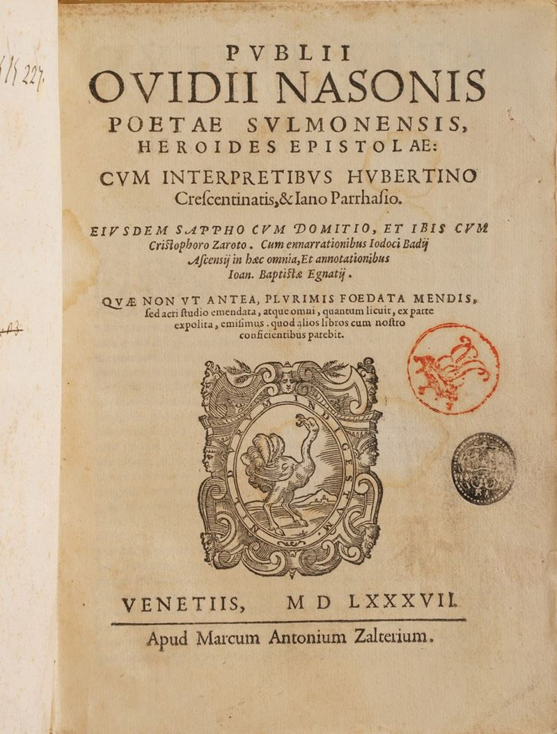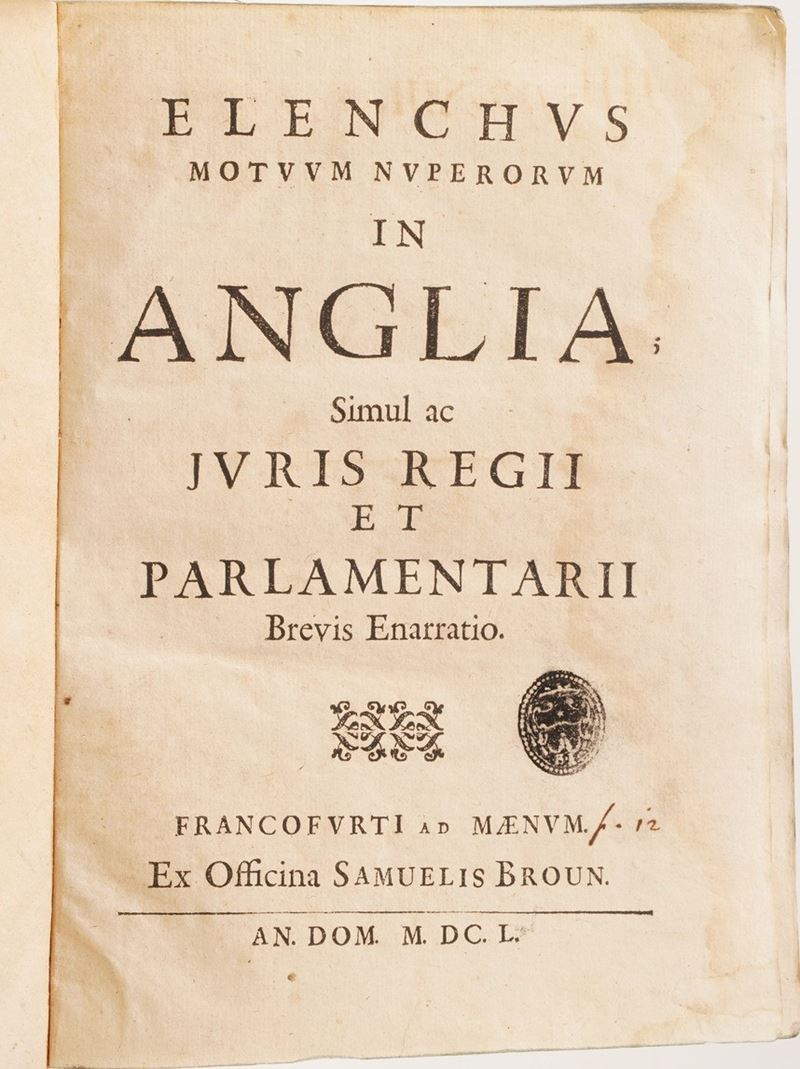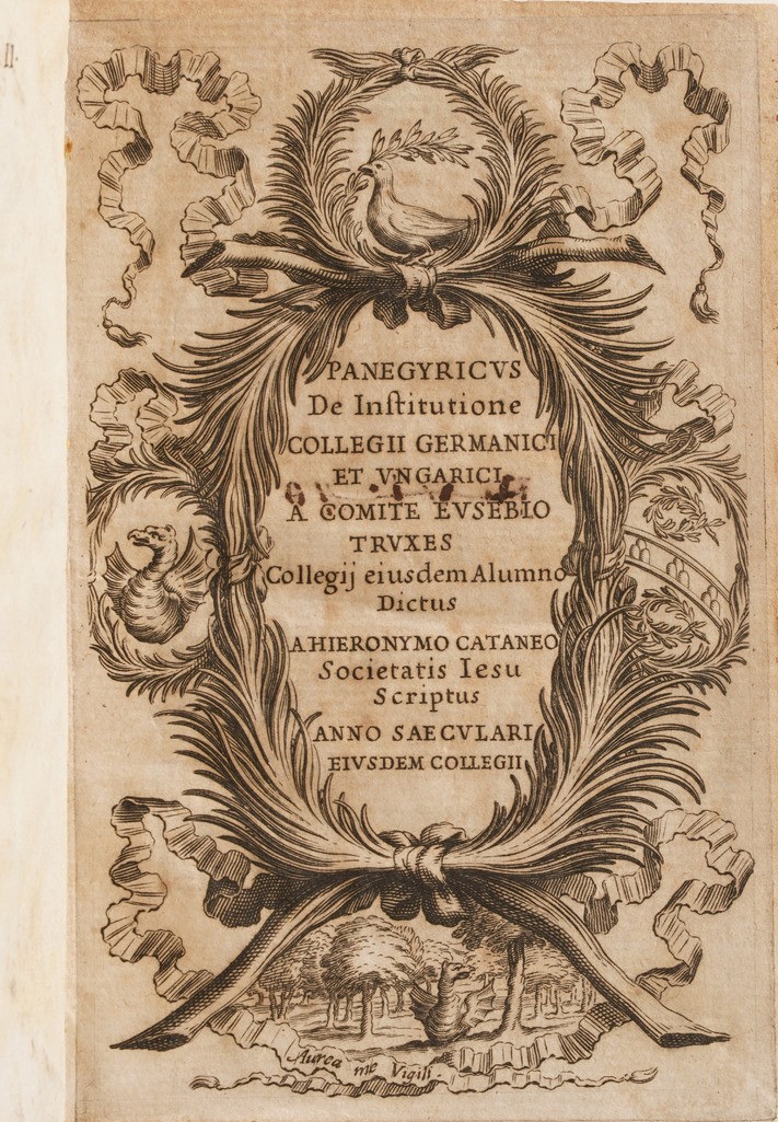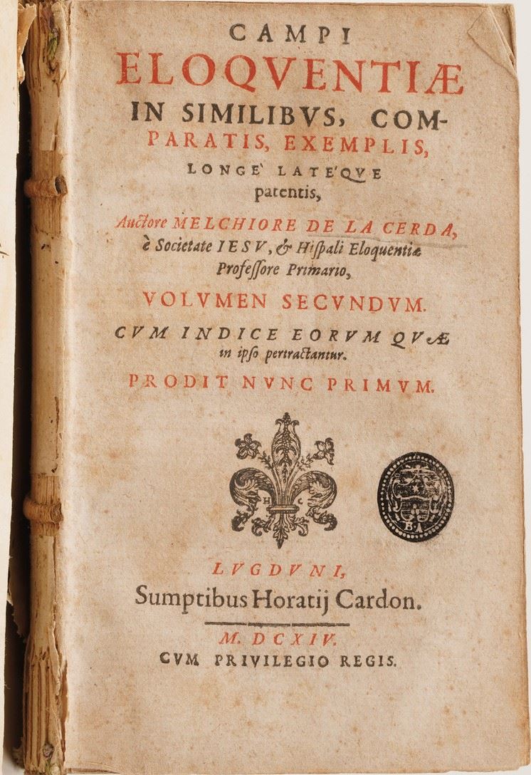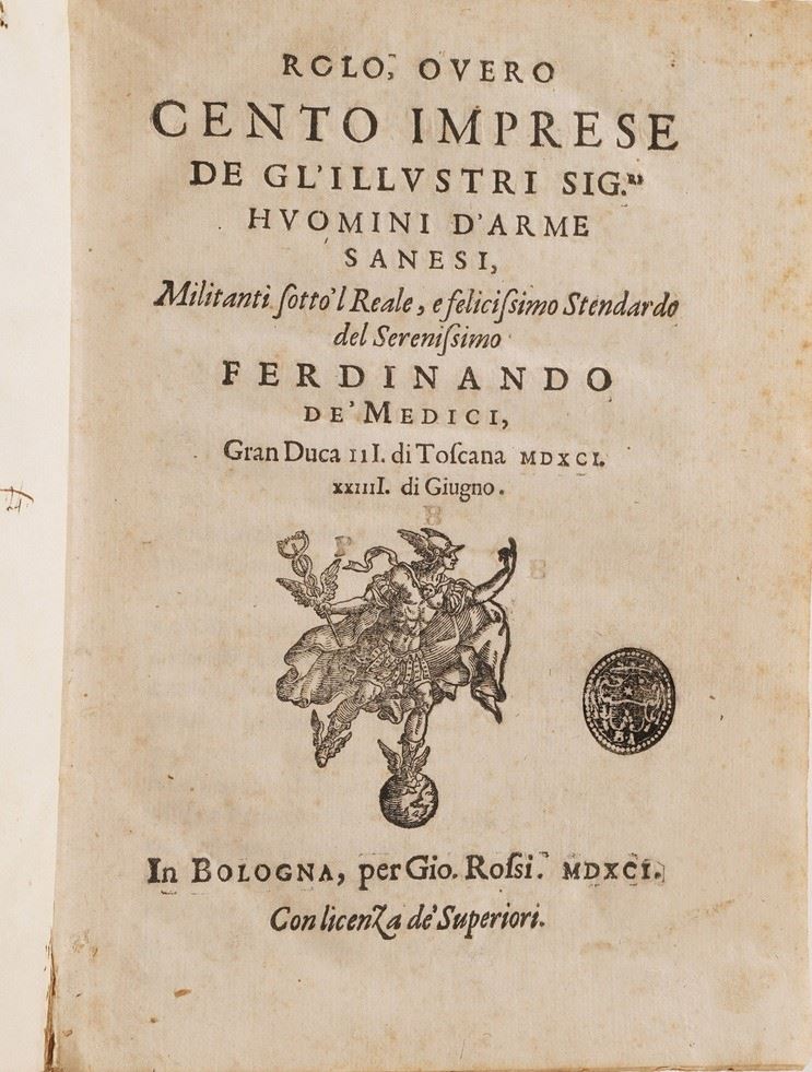 Campi Eloquenziae in Similibus Comparatis Exempleis ... Lugduni 1614; Panegyricus De Istituzione Collegi Germanici; Critices Christianae ... Colonia 1611; Premiere Lettre de M. Larc. De Cambrai; Catholicon et Notorium Imperatore Ferdinandi II° 1625; Publi Ovidi Nasonis ... Venezia 1587; Cento Imprese degli Illustri Signori Uomini d’Arme Sanesi ... Bologna 1591; Roxane Tragi comedie, a Paris 1640; Elencus Motum Nuperorum in Anglia ... Francuforte 1650; Historie de L’Academie ... Amsterdam 1723; Goh. Adami Scherzeri Antibellarminus ... Lipzie 1703