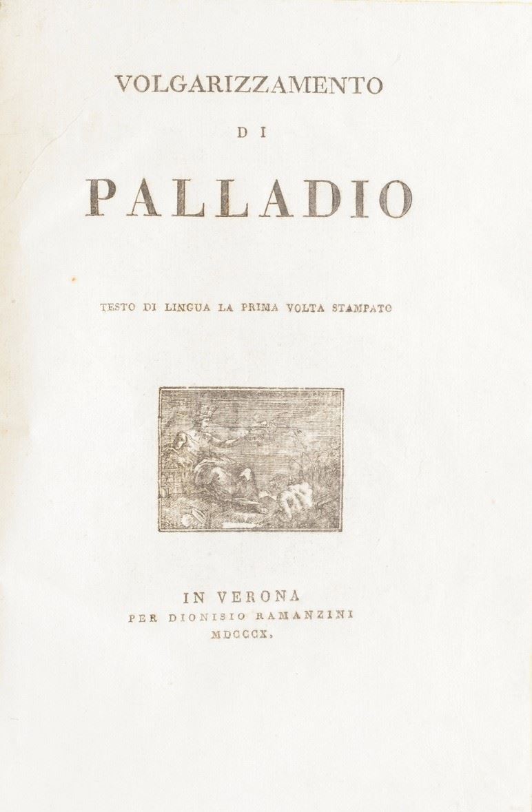 Palladio Rutilio Tauro Emiliano Volgarizzamento di Palladio, testo in lingua la prima volta stampato. In Verona per Dionisio Ramanzini, 1810.